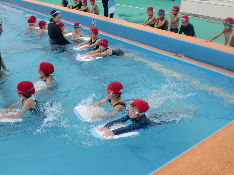 先週から始まった「水泳教室」も、今日が最後です。どの学年も講師の先生の指示をしっかり聞いて一生懸命泳ぎました。計4回の指導で、泳ぐコツをつかめた子もいたようです。水泳は7月で終了しますので、プールに入るのも今週まで。去年よりも泳力が伸びたかな?