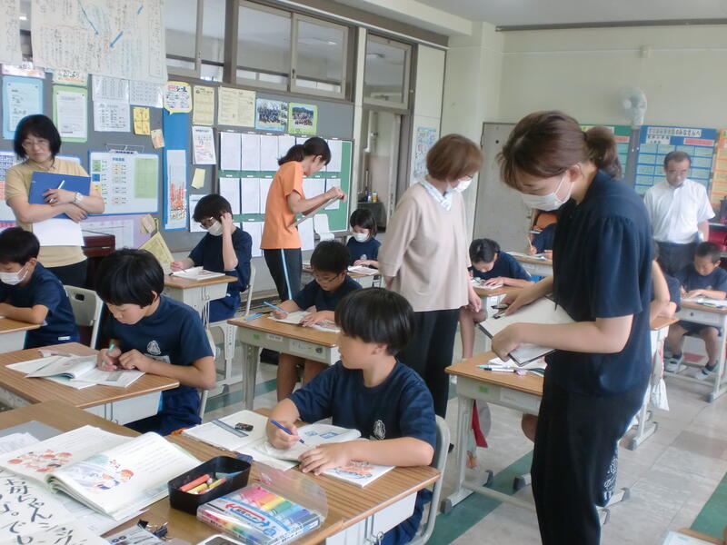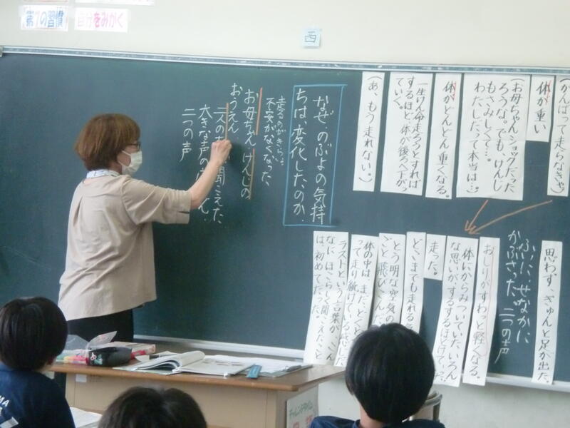 本日は、4年生の授業研究会が行われました。物語文「走れ」の読み取りです。主人公の気持ちが変わったところはどこか」「クライマックスを一文選ぶとどこなのか」について、これまでの学習を生かしながら文章を一生懸命読むことができました。