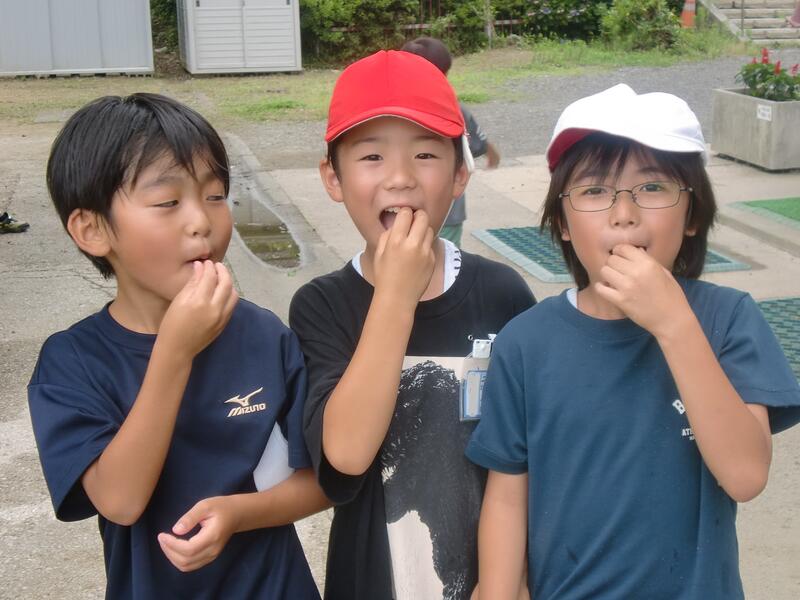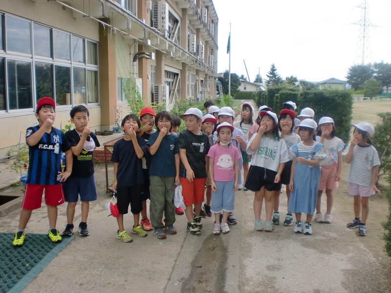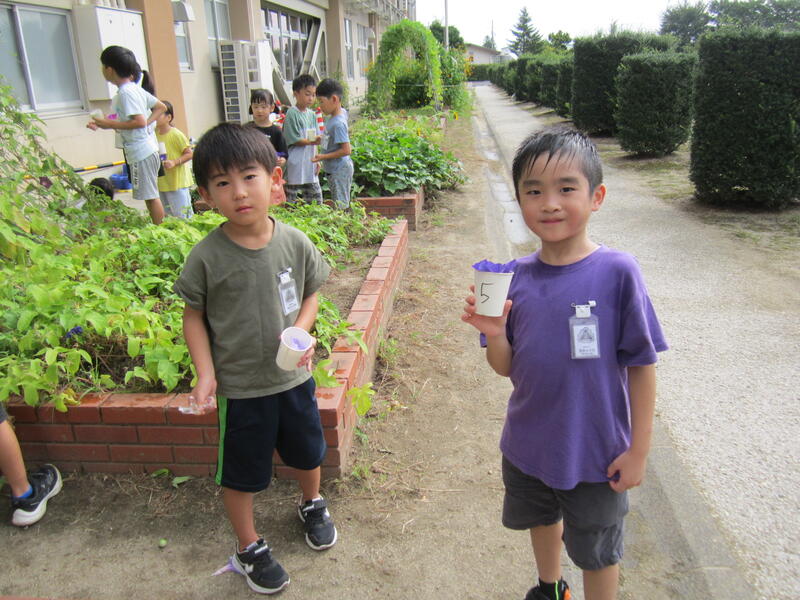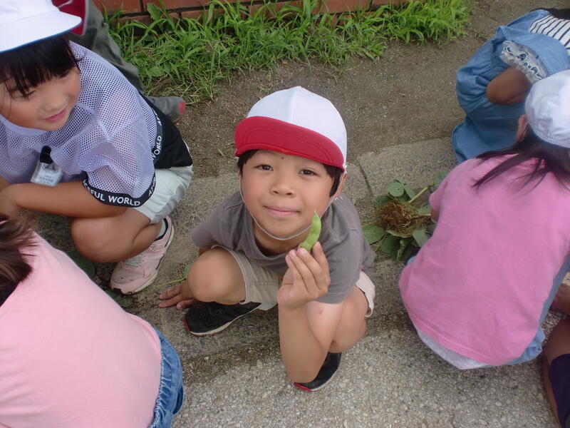 獲れたてのミニトマトの味は格別だったようです。その後枝豆も収穫し、きれいに洗ってみんなで分けました。野菜が大きく育ってよかったね!