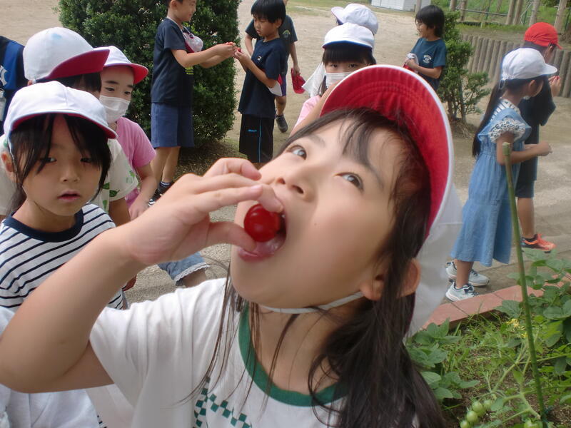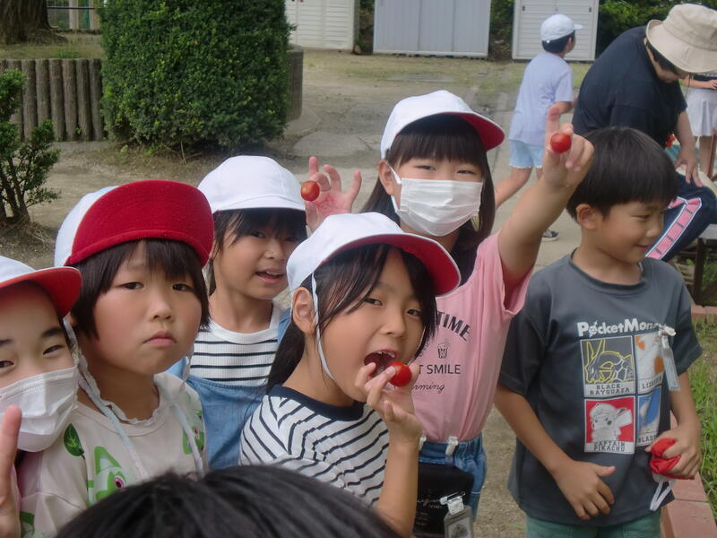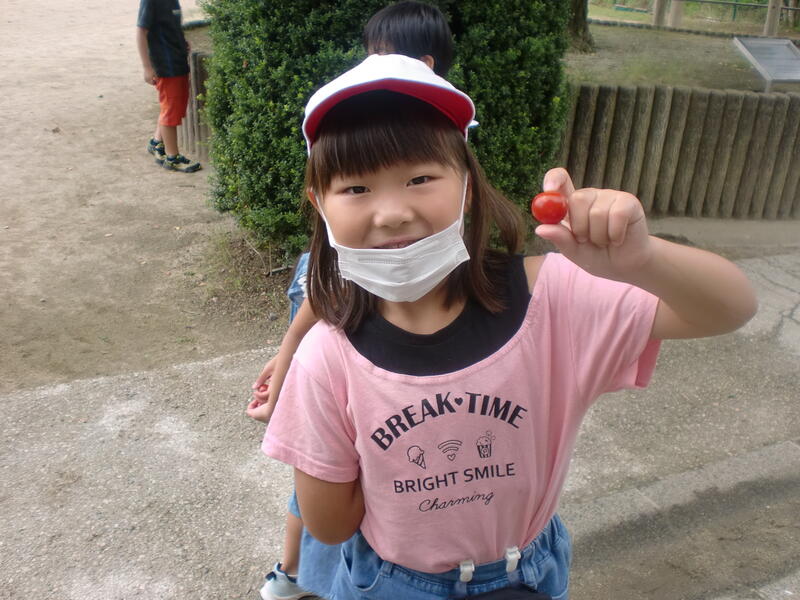 ミニトマトは一人1個ずつ赤くなったものをもらい、みんなで食べました。