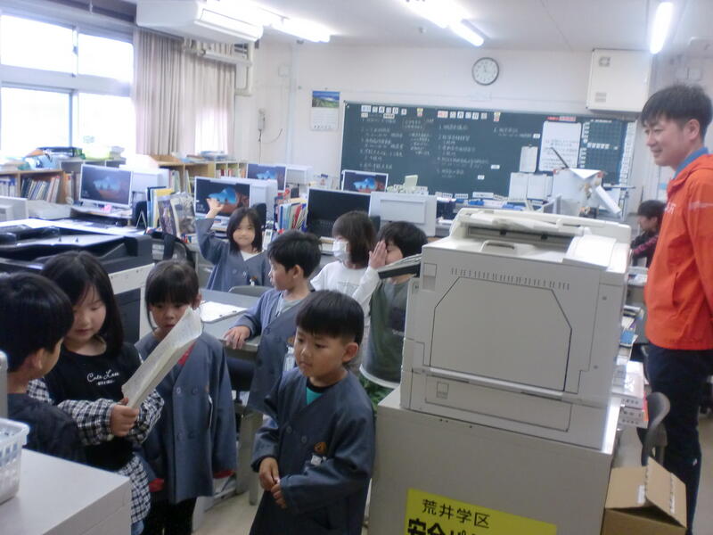 今日の生活科は、学校探検です。1・2年生でグループを作り、2年生が1年生を連れて学校のいろいろな教室を探検しました。保健室や職員室そして校長室と、普段あまり入らない部屋にもおじゃましました。ふだんはまだまだお世話をされることが多い2年生も、今日は一生懸命1年生のお世話をしていました。