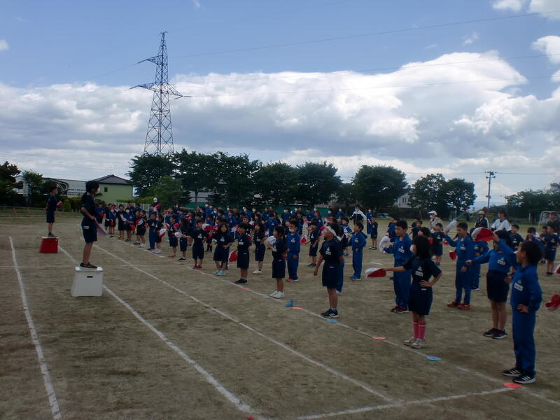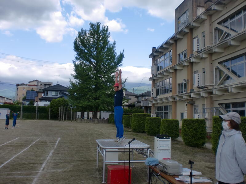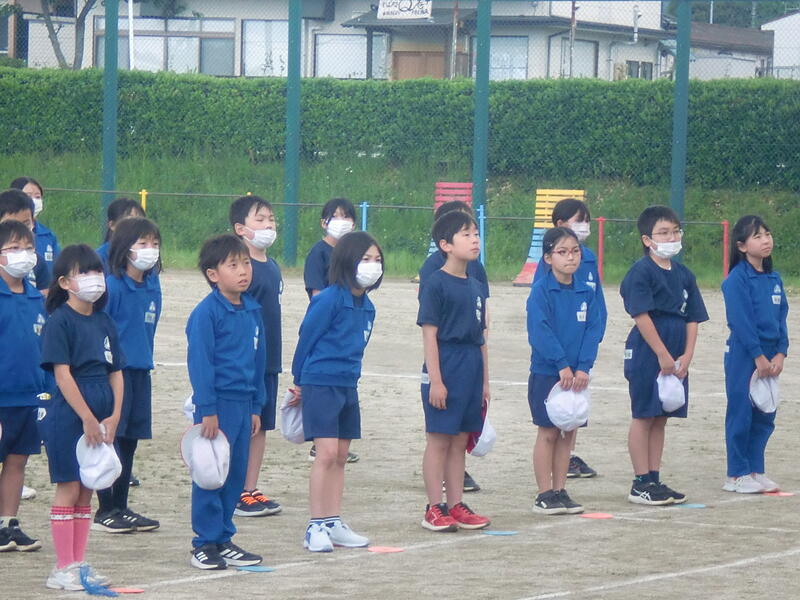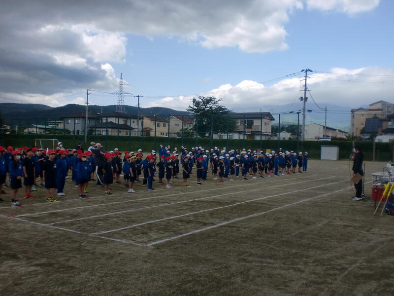 1回目の運動会全体練習が行われました。開会式とラジオ体操、そして応援合戦です。