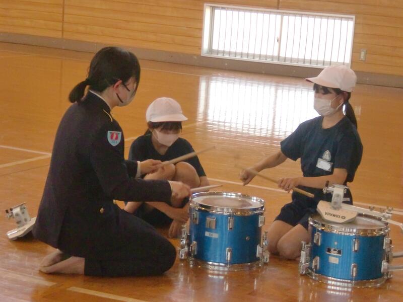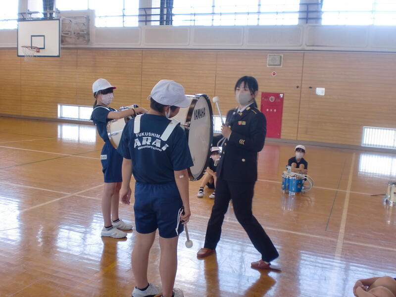 トランペットと打楽器担当の子どもたちは、それぞれの先生に、トランペットの吹き方のコツや、大太鼓や小太鼓の叩き方のコツを教えてもらい、さらに演奏に磨きがかかりました。