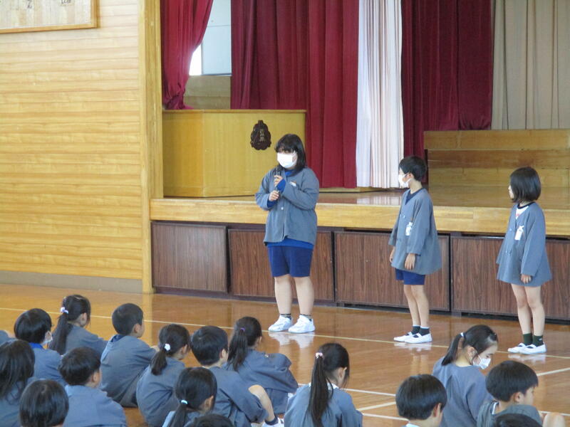 昼休みに、運動会での係児童の打合せが行われました。担当の先生から、当日の動き方について確認したり、練習したりしていました。運動会の成功は係の5・6年生の活躍にかかっています。土曜日の本番には、自分の仕事を精一杯がんばってほしいと思います。