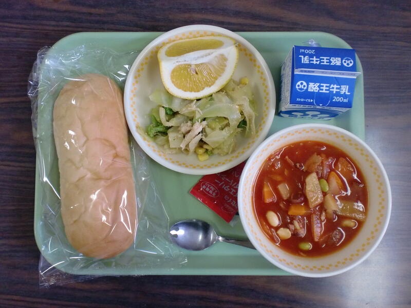 コッペパン ポークビーンズ ブロッコリーサラダ 河内晩柑 です。一学期が始まって一週間。みんな元気で過ごすことができました来週もがんばろう