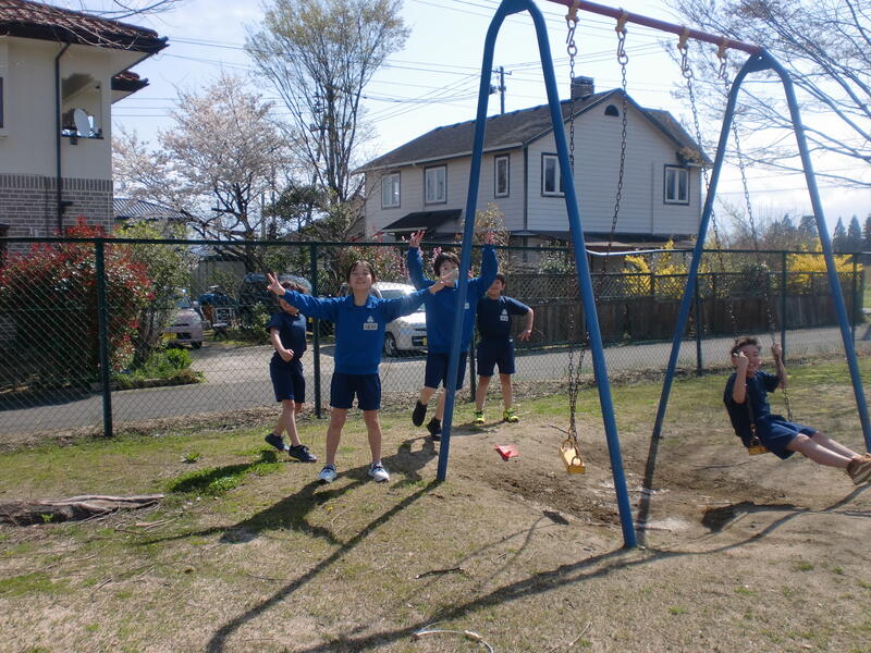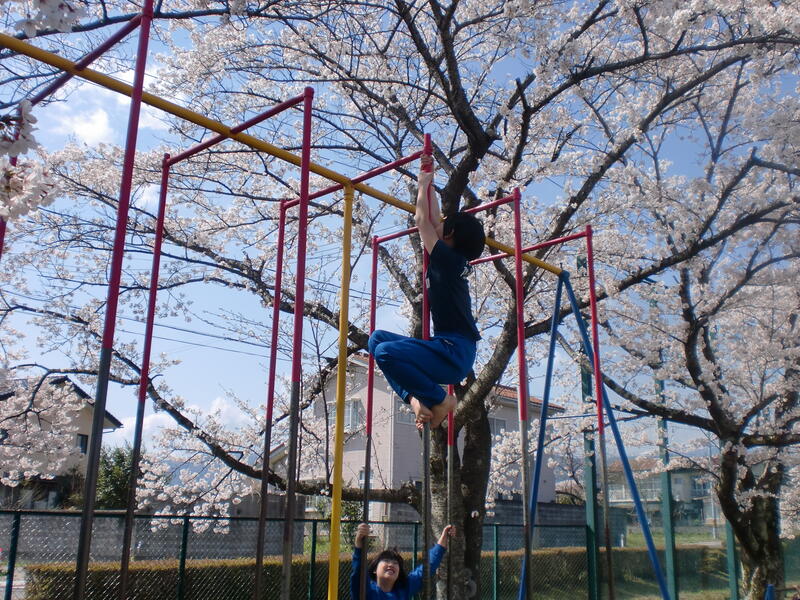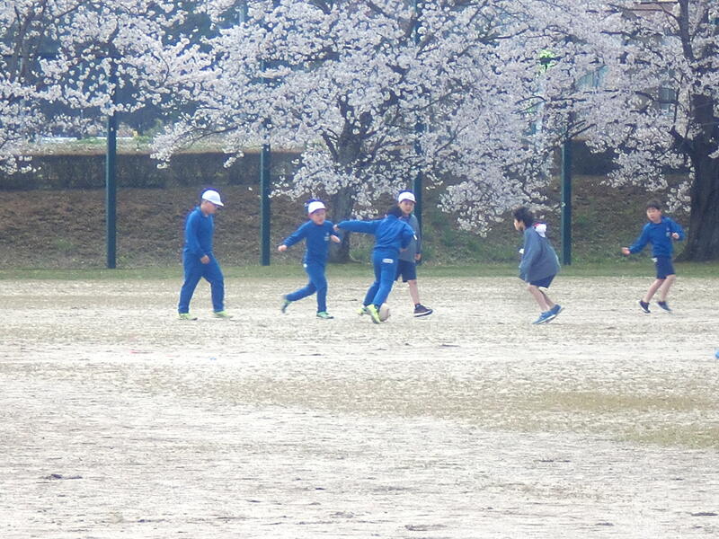 校庭の桜が満開になりました。今日は春らしいいい天気。校庭で楽しそうに遊ぶ子どもたちの元気な姿がとってもいいですね。