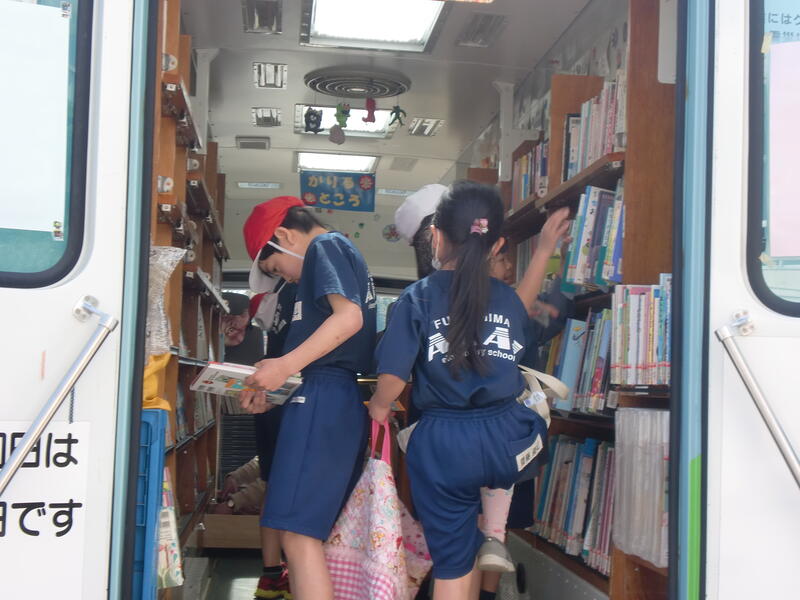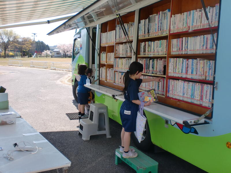 今年度最初のしのぶ号がやってきました。さっそく2年生が本を返したり読みたい本を選んだりしていました。今年もたくさん本を読んでくださいね。