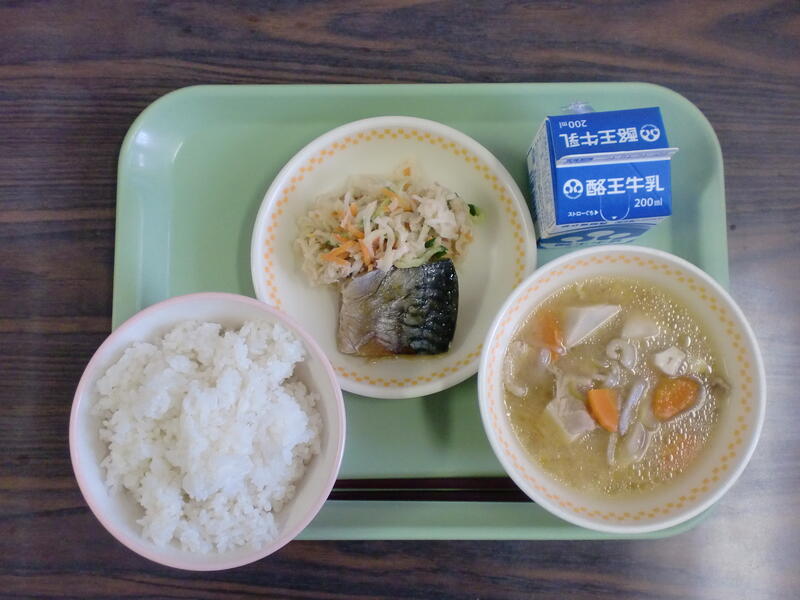 ごはん 豚汁 さばのみそ煮 切り干し大根サラダ です。おいしくいただきました