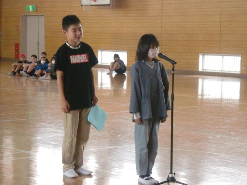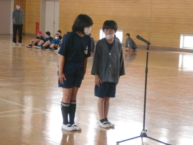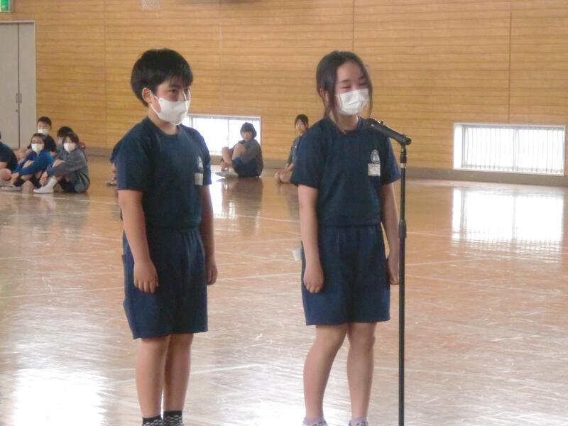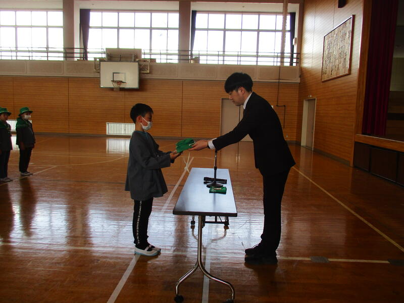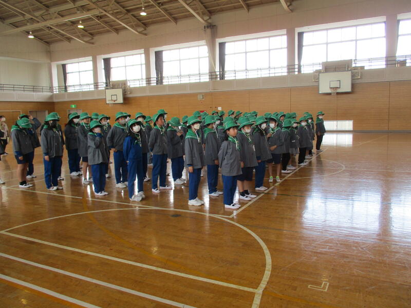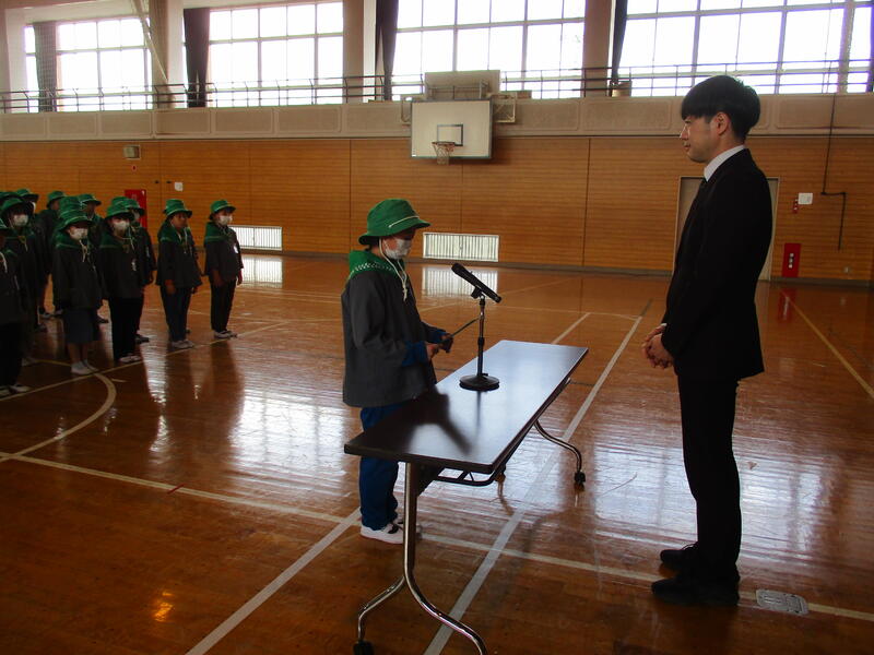 本日、令和6年度の「緑の少年団結団式」が行われました。教頭先生から、帽子とスカーフが代表児童に渡され、JRC委員長が誓いの言葉を述べました。先輩方から受け継がれている大事な活動です。4・5・6年生のみなさん、今年もがんばりましょう。