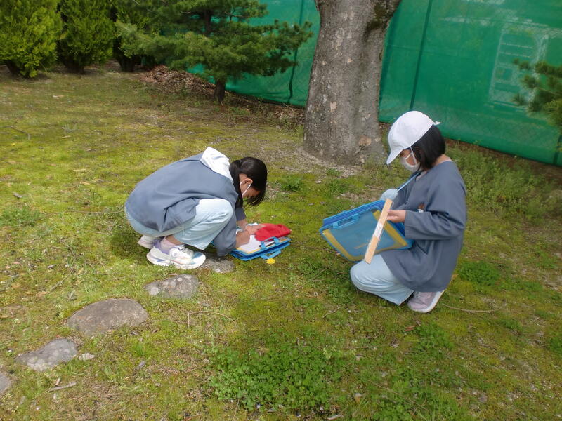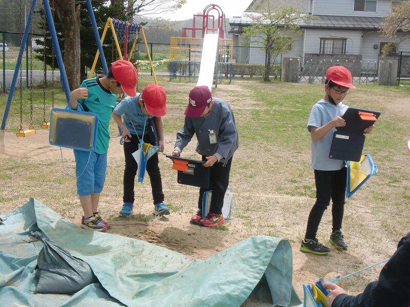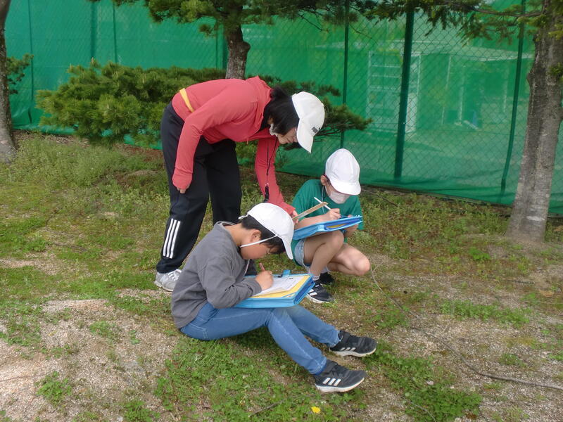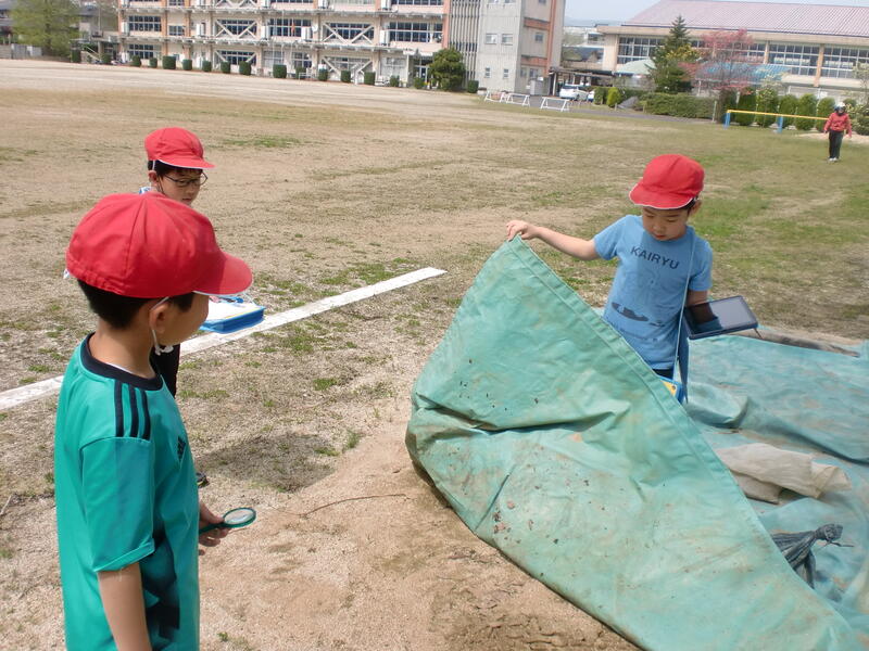 3年生は初めての理科。今日は「春の生き物」の観察。タブレットで写真を撮ったり、カードにまとめたりと、一生懸命に取り組みました。