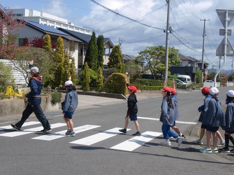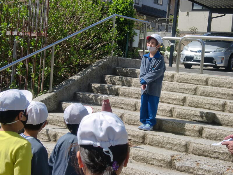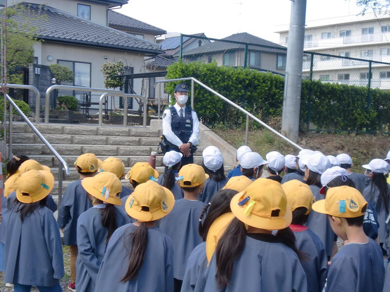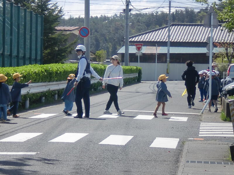 今年も交通事故に遭わないように、横断歩道の渡り方や、歩道の歩き方をみんなで確かめました。今日は佐倉駐在所のお巡りさんも来て、みんなの歩く様子を見ていただきました。2人のお巡りさんは、「子どもたちはしっかり話を聞いてくれてますね。」と子どもたちの様子を褒めていました。今年も無事故で過ごしましょうね!