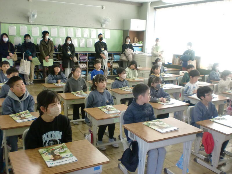 今日は、1・2年生の教室に「たんぽぽの会」の方が来校し、読み聞かせをしていただきました。子どもたちも、この日を楽しみにしていました。