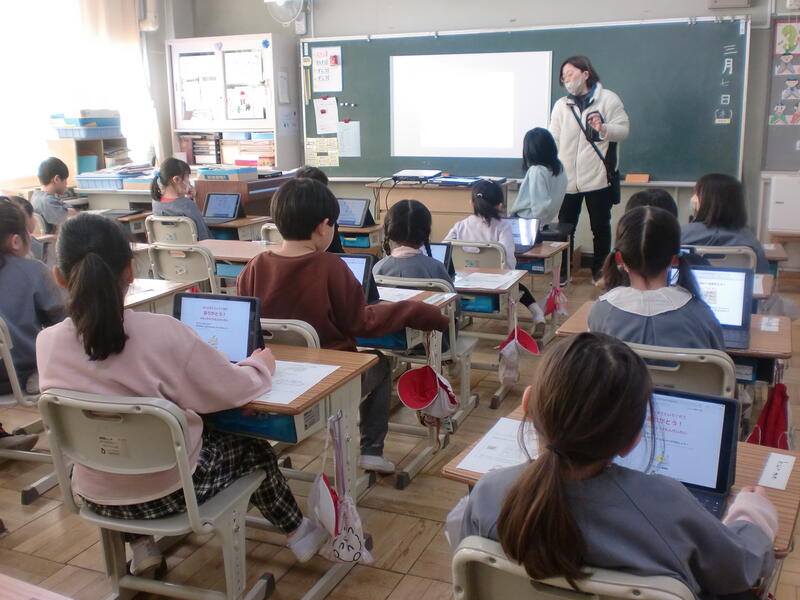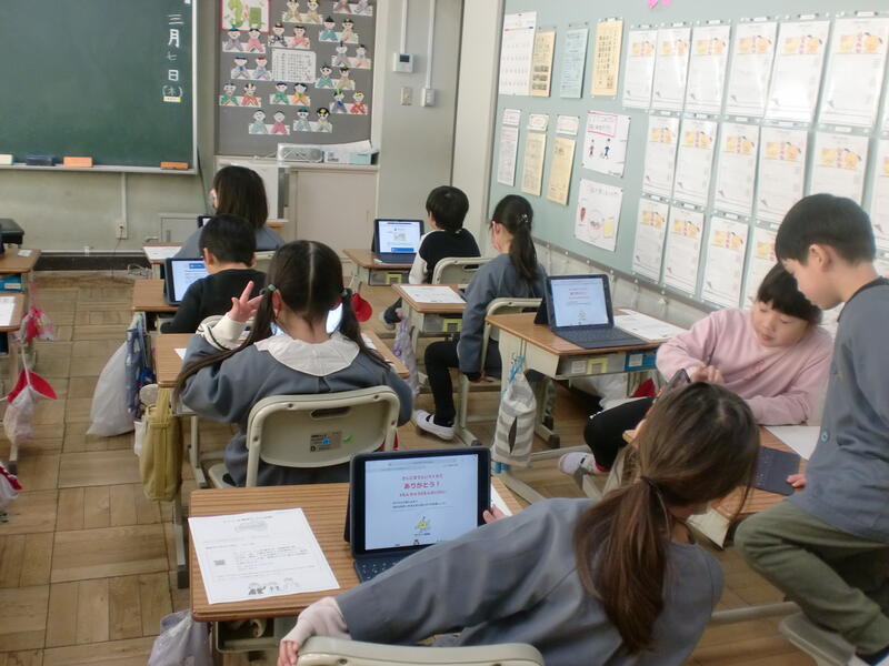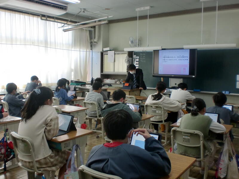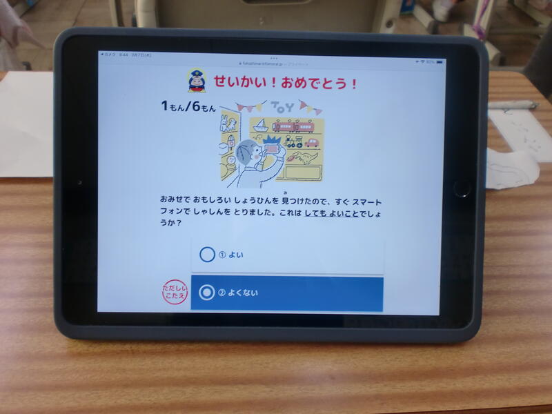 1年生は、ICT支援員さんの指導で「情報モラル」について学習しました。クイズ形式で答えながら「タブレットやスマートフォン、そしてゲーム機の正しい使い方」について、学ぶことができました。タブレットやスマートフォンは使うと便利ですが、使い方を間違えると大変なことになります。小さいときからこのように情報モラルを学ぶことはとても大切ですね。
