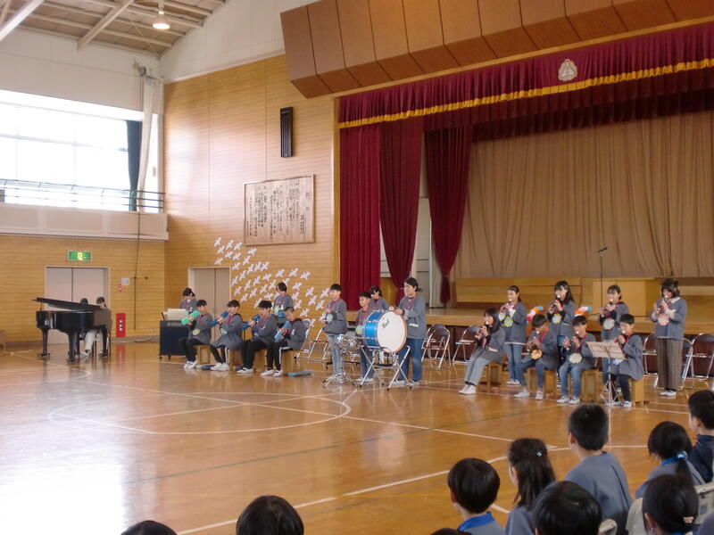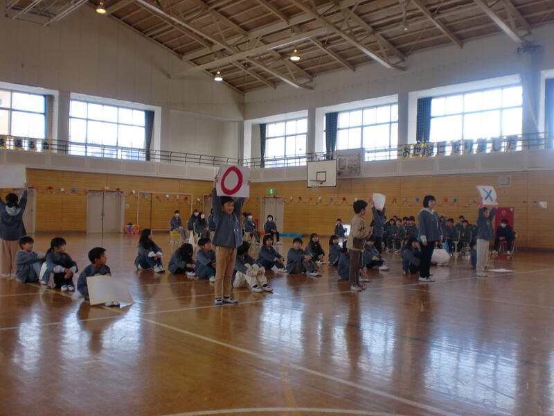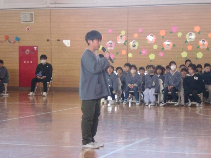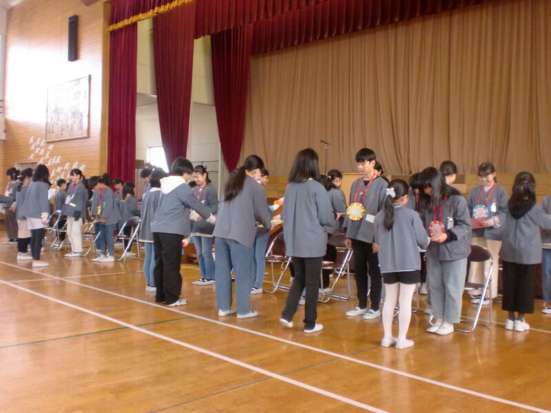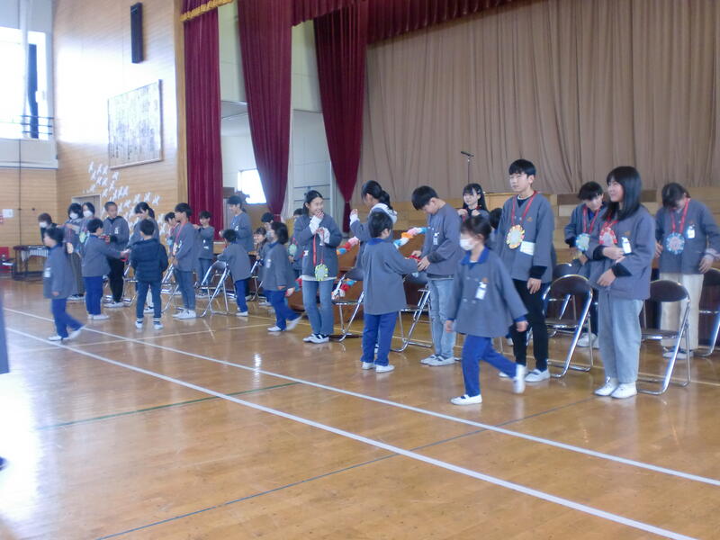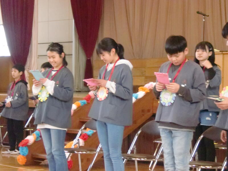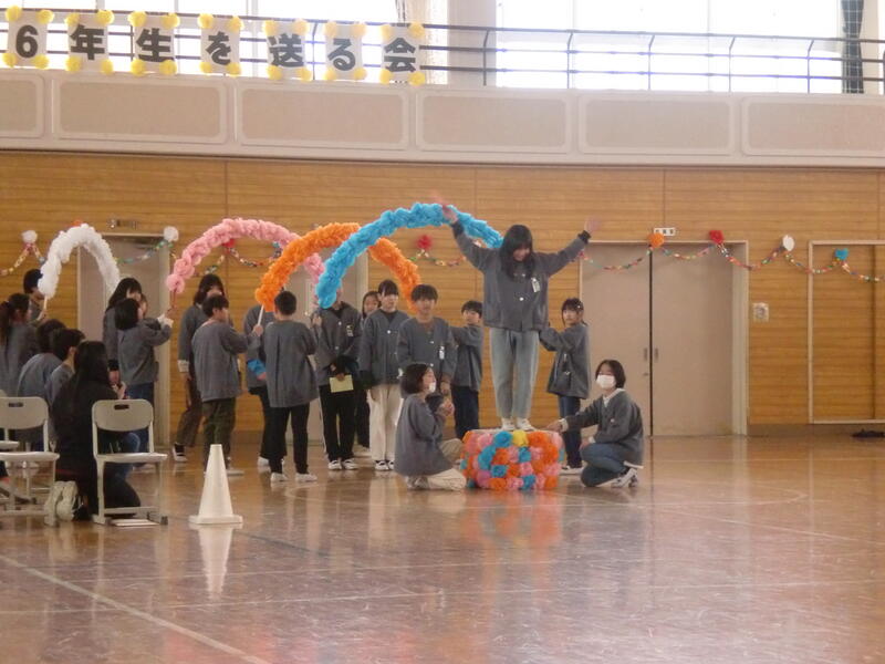 本日、6年生を送る会が行われました。これまでお世話になった6年生のお兄さん、お姉さんに感謝の気持ちを込めて、1年生から5年生までの在校生が、よびかけや〇✖ゲーム、そしてお手紙やプレゼントを贈りました。
