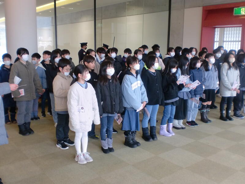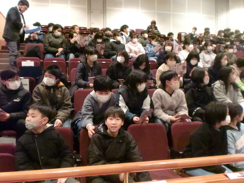 本日5・6年生は、パルセいいざかで「第44回福島自衛隊音楽祭」の演奏を聴きに行きました。土曜日の一般公演の前に、今年は荒井小、飯坂小、西信中、大鳥中の4つの学校を招待して一足早く演奏会を開いていただきました。