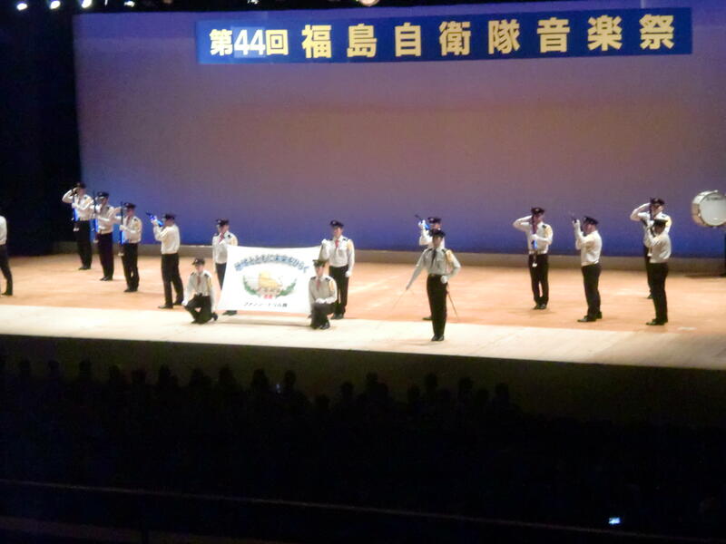 福島駐屯地の音楽隊をはじめ、山形、郡山の駐屯地からも参加しての音楽祭です。子どもたちは、演奏のすばらしい音色、迫力ある太鼓の響き、一糸乱れぬファンシードリル隊の演技を間近で見たり聴いたりすることができ、たいへん有意義な時間を過ごすことがでいました。