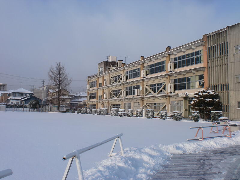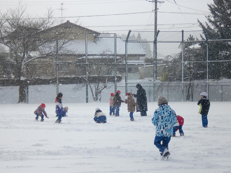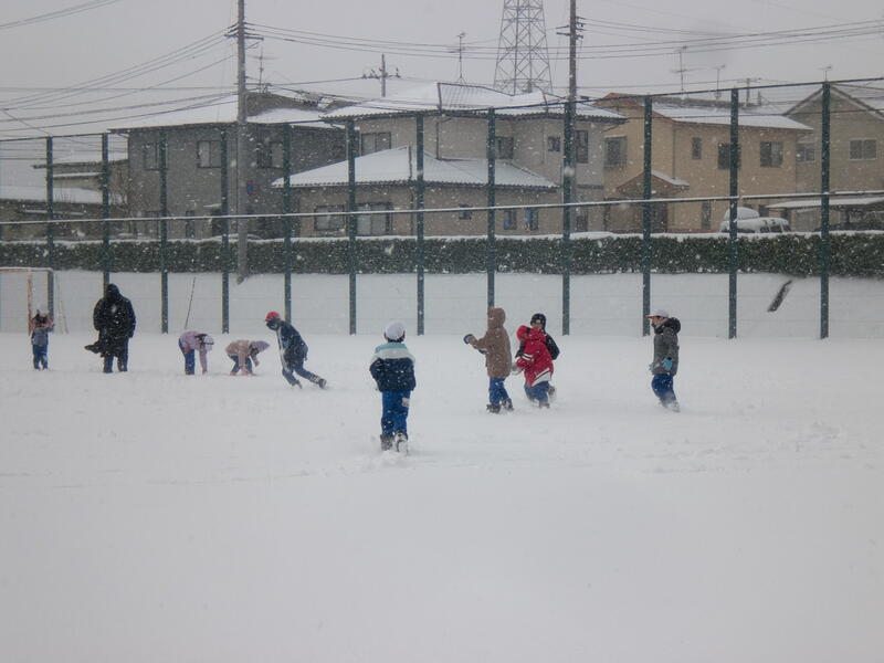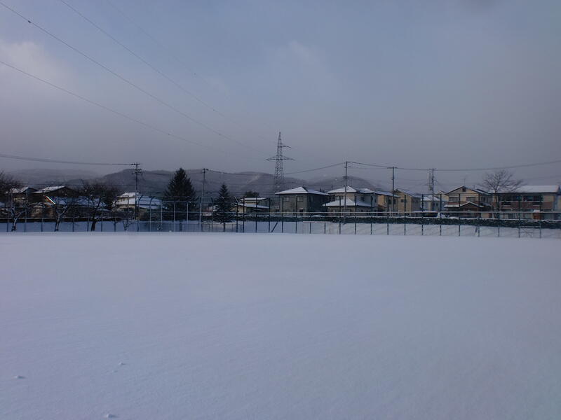今年初めての本格的な雪。校庭も雪が積もりました。