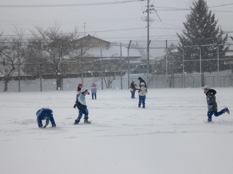 さっそく1年生は雪合戦。寒さに負けずとっても楽しそうでした。