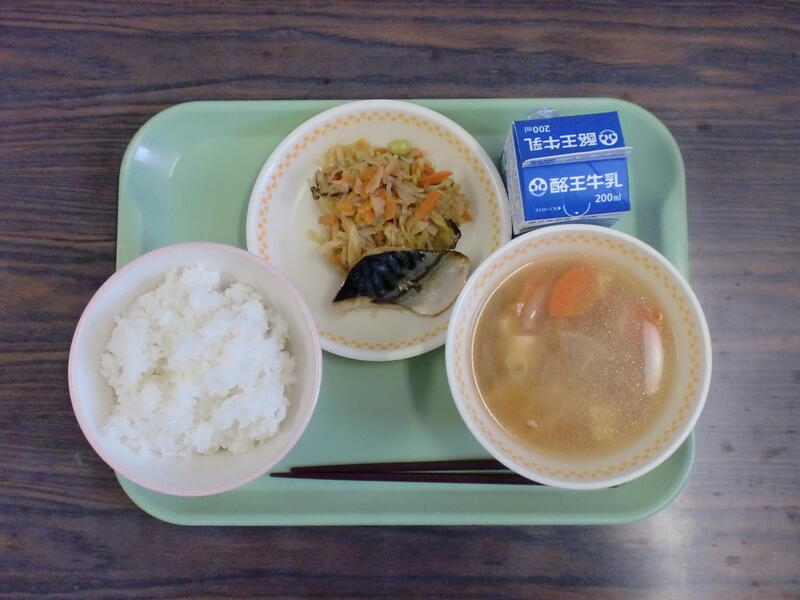 ご飯 減塩トマト豚汁 さばの塩焼き 切り干し大根の炒め煮 です。ごちそうさまでした