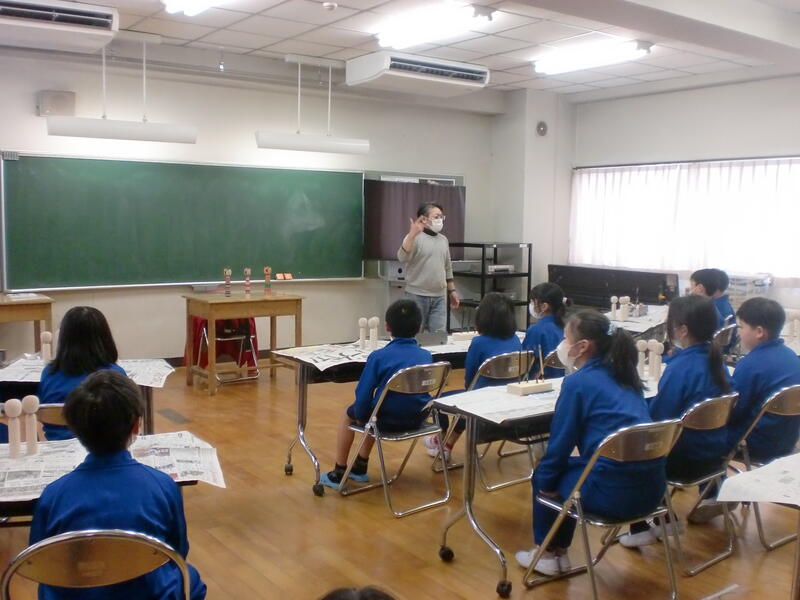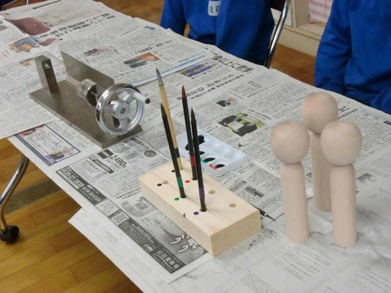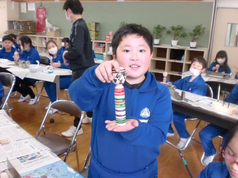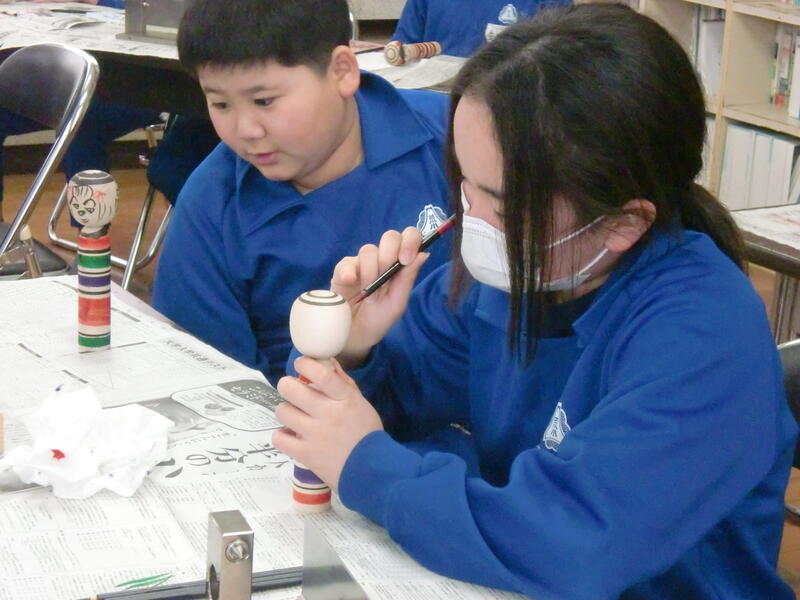 森林環境学習の最後として、4年生が土湯こけしの「絵付け」に挑戦。