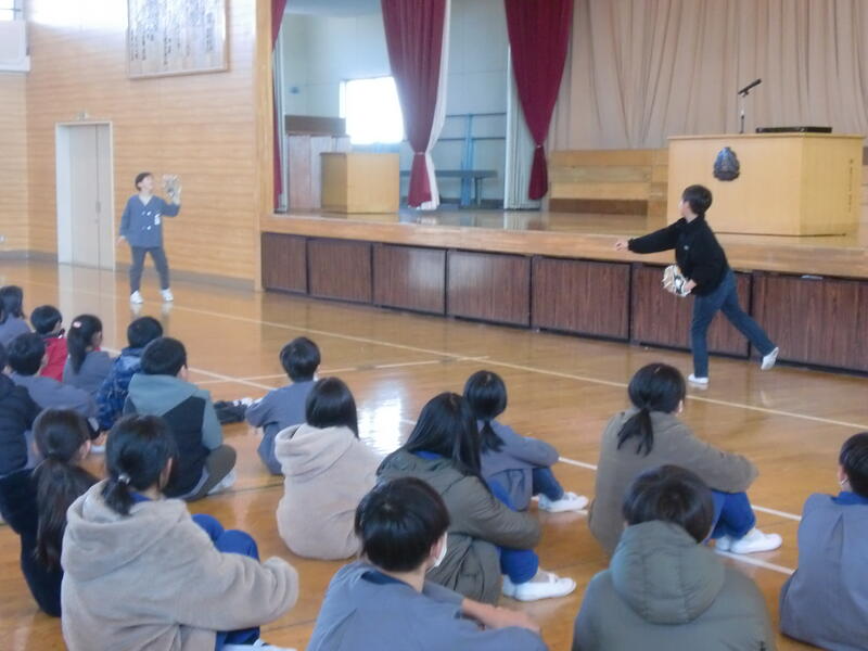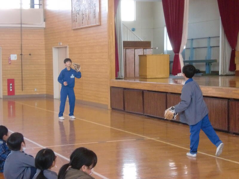 「思ったより軽い」など、実際に持った子どもたちからの感想でした。これから学級ごとに回して、グローブによく触れてもらいます。その後、みんなで楽しく遊べるようにしたいと思います。