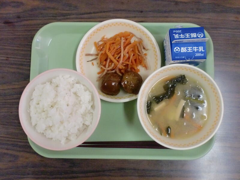 ご飯 凍み豆腐のみそ汁 きんぴら肉団子 いかにんじん です。ごちそうさまでした