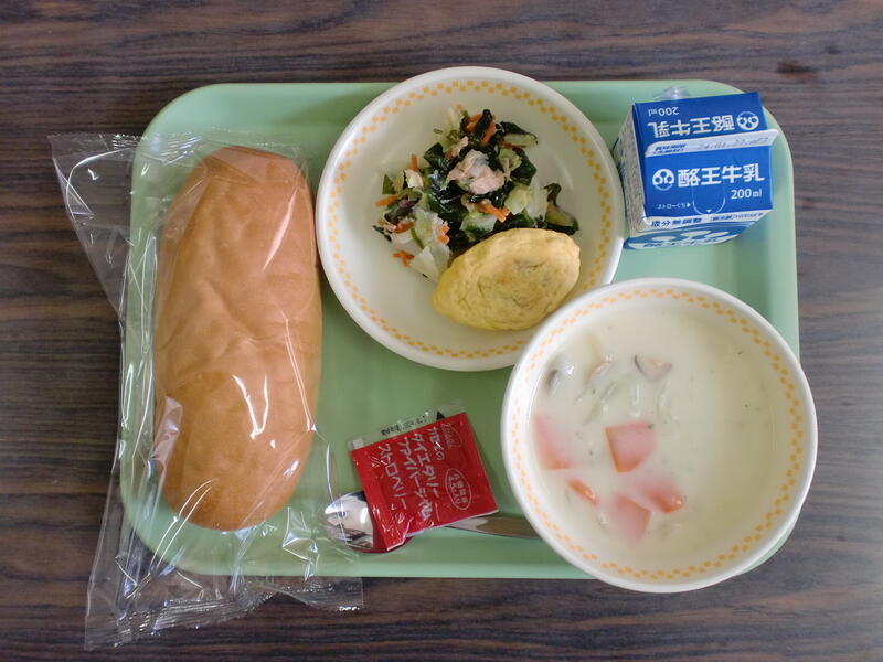 コッペパン いちごジャム クラムチャウダー ミートオムレツ 海藻サラダ です。ごちそうさまでした