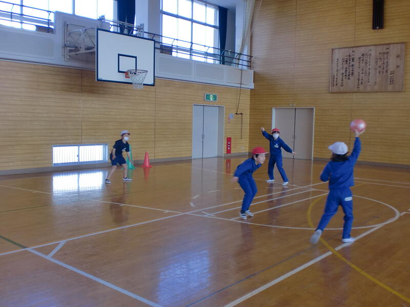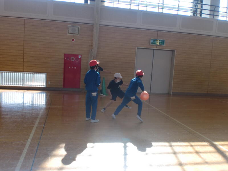 3年生の体育は「ゴール型ゲーム」の学習です。「ゴール型ゲーム」の学習といえば、「サッカー」を取り入れることが多いですが、子どもたちの投げる力を伸ばしていきたいことから、「ハンドボール」を行っています。