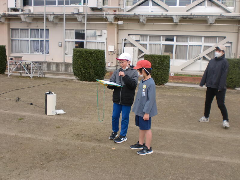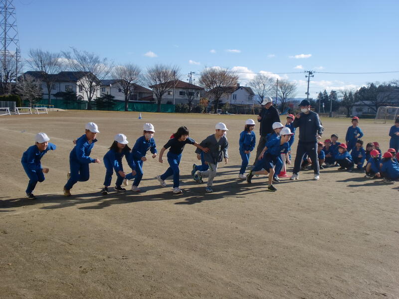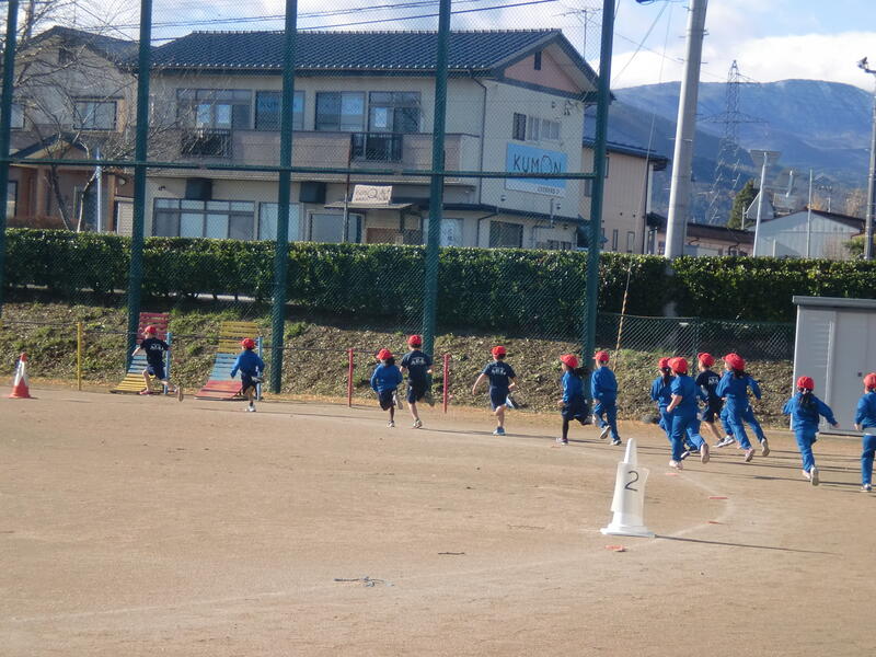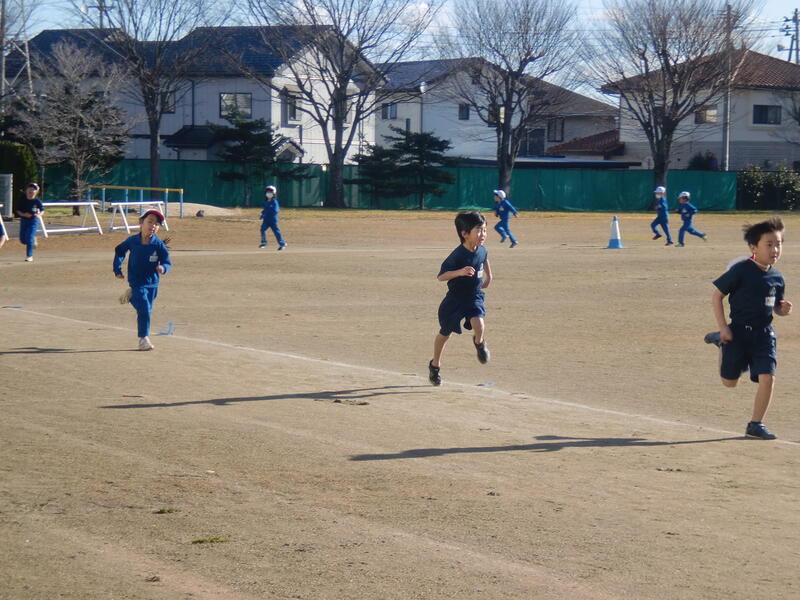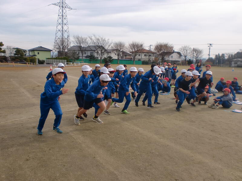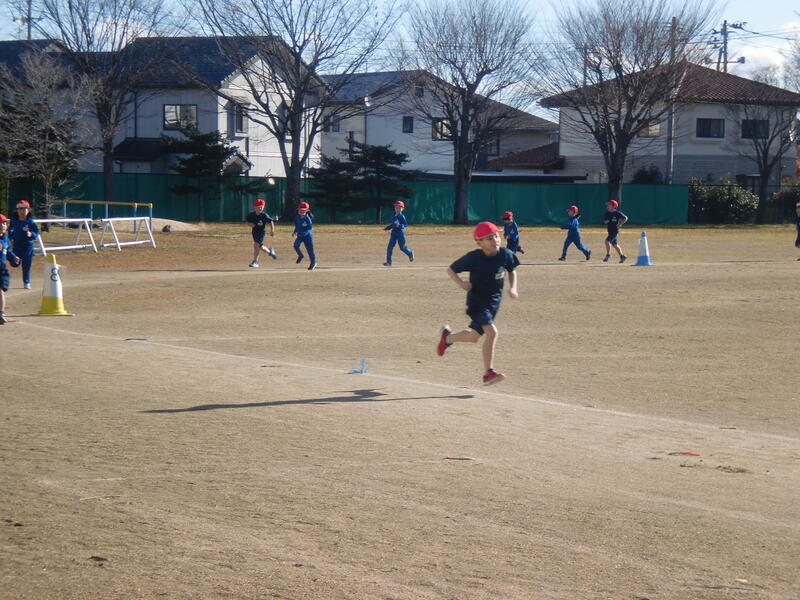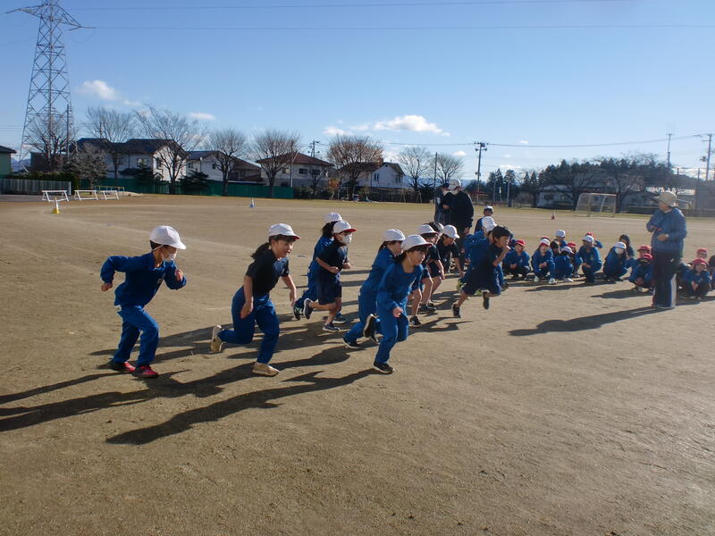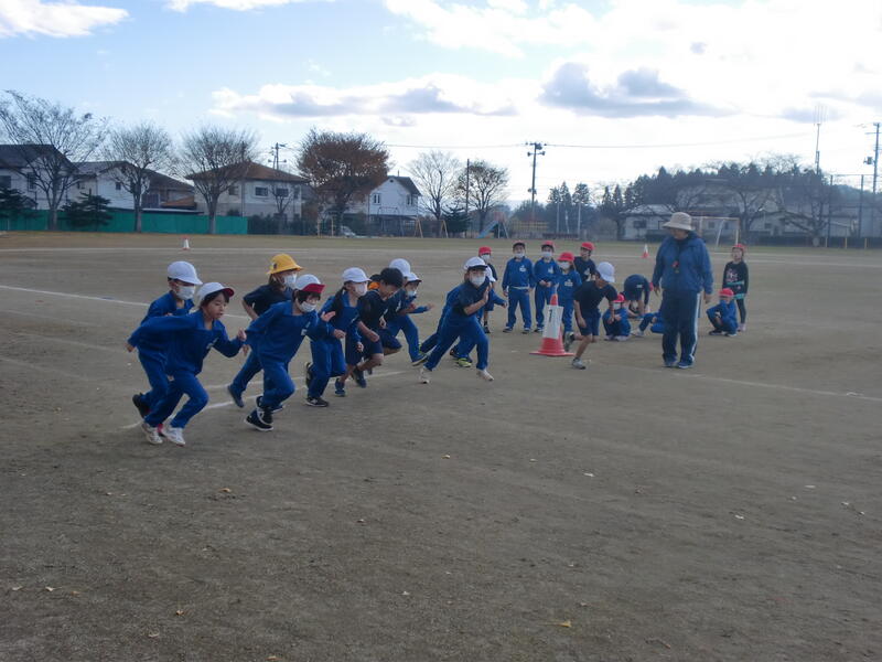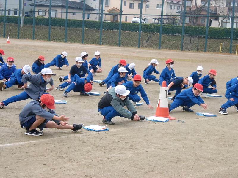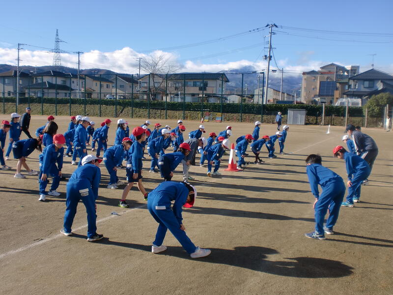 昨日とはうってかわって寒さの厳しい中、中学年の持久走記録会が行われました。低学年より1分多い4分間の間に何m走れたかを記録します。寒さに負けず、精一杯走りきることができました。