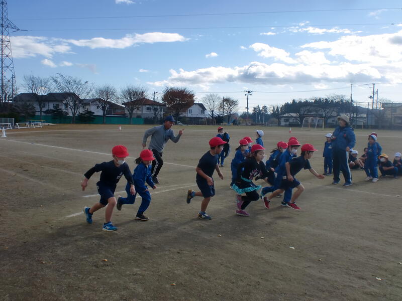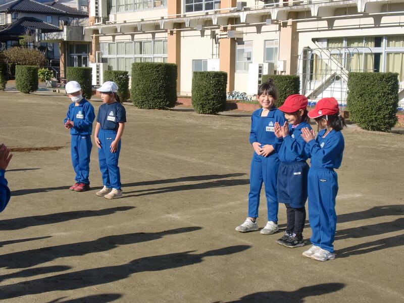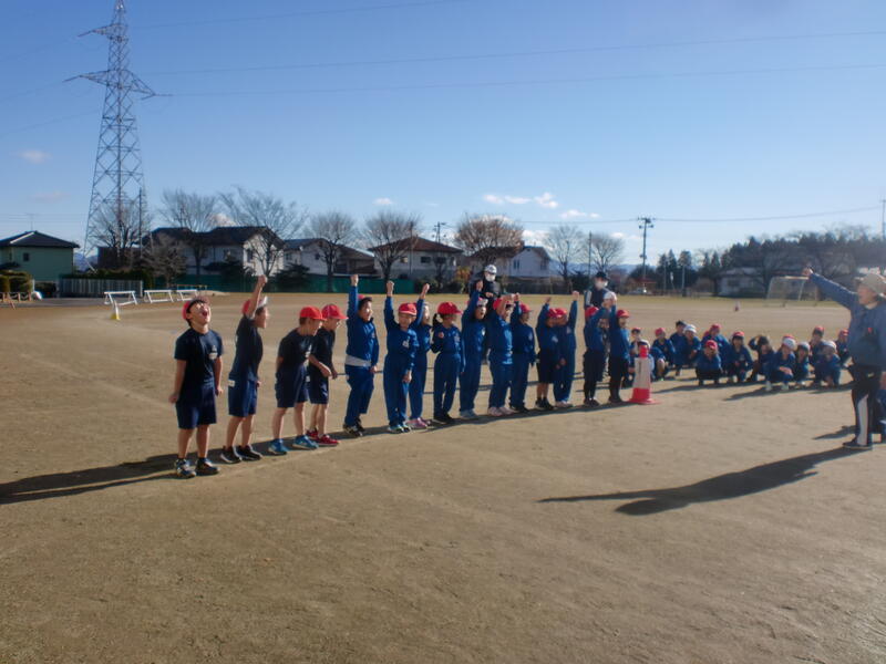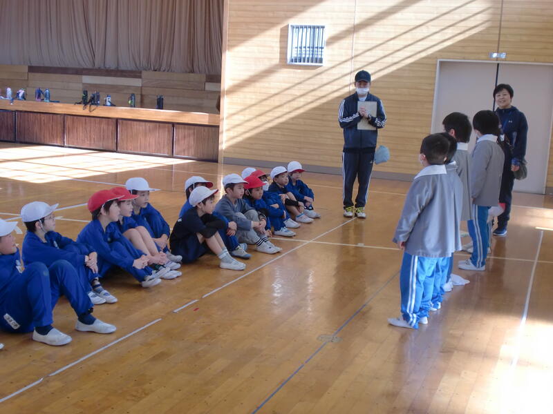 今日は、よく晴れて温かさも感じるいい天気。インフルエンザで延期になっていた低学年の持久走記録会が行われました。