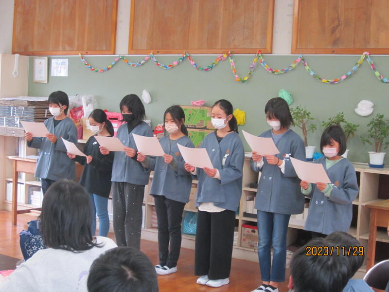 <1年生、2年生それぞれの代表の子から、感想発表>