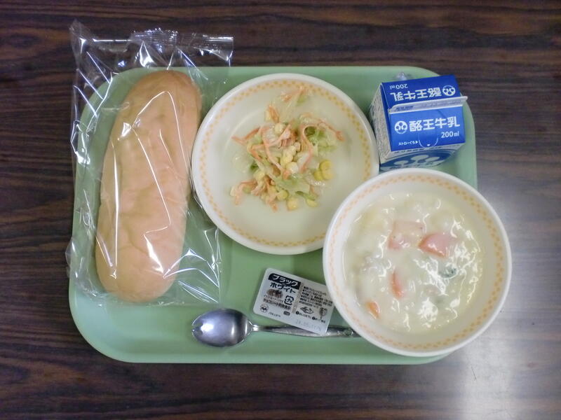 米粉パン 白菜のクリーム煮 コールスローサラダ ブラック&ホワイトチョコ です。ごちそうさまでした