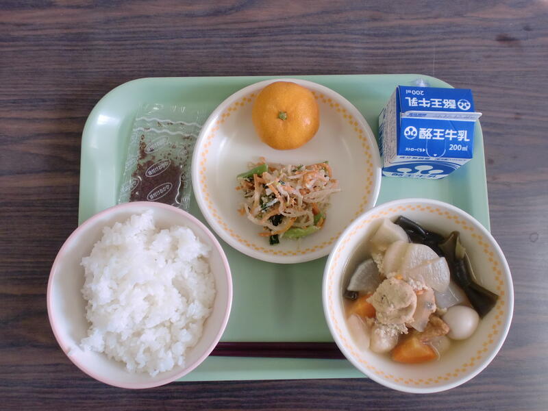 ごはん おでん ごまあえ みかん 味付けおかか です。おいしくいただきました