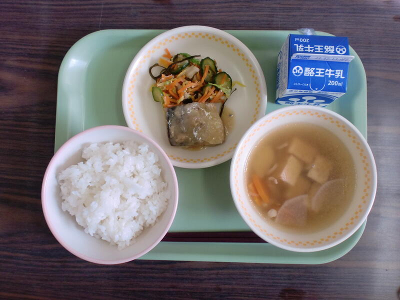 ごはん のっぺい汁 さばのみそ煮 ゆずの香りあえ です。おいしくいただきました