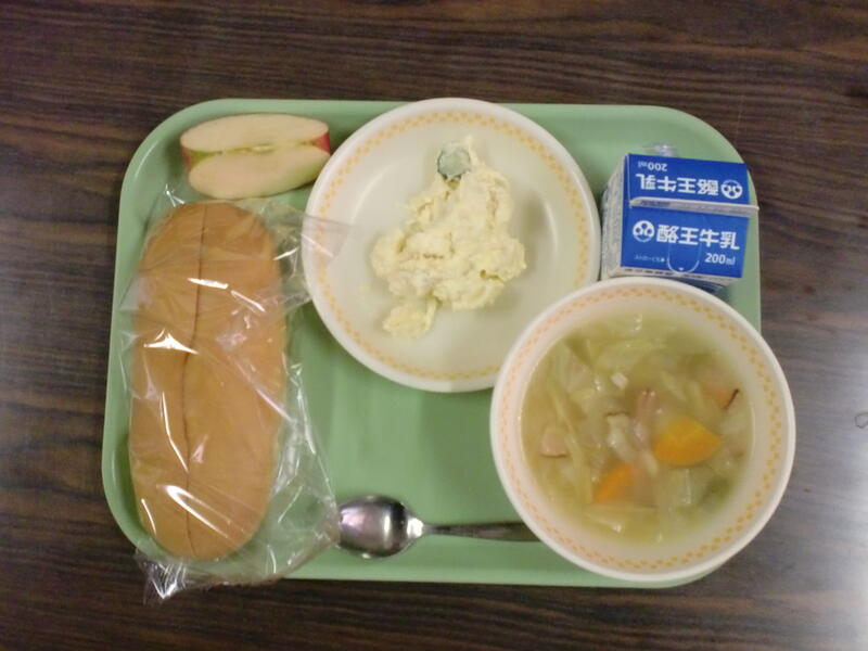 切目入りコッペパン 冬野菜のポトフ たまごサラダ りんご です。