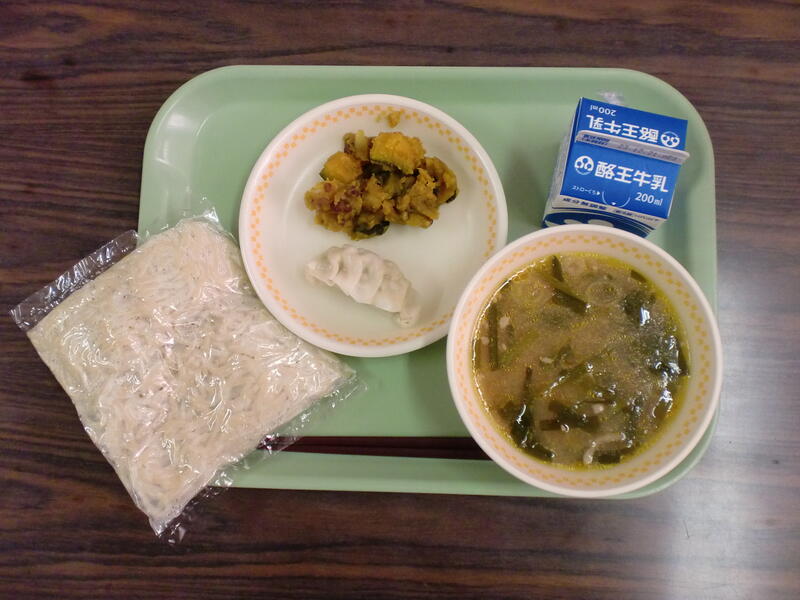 中華めん 冬至かぼちゃ みそラーメンかけ汁 しそぎょうざ です。おいしくいただきました。
