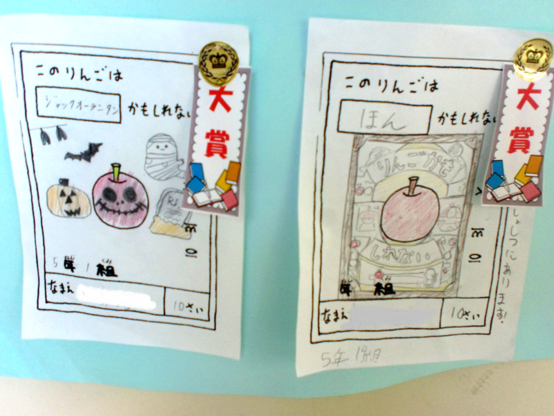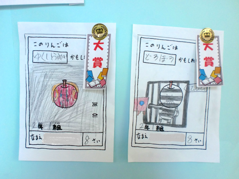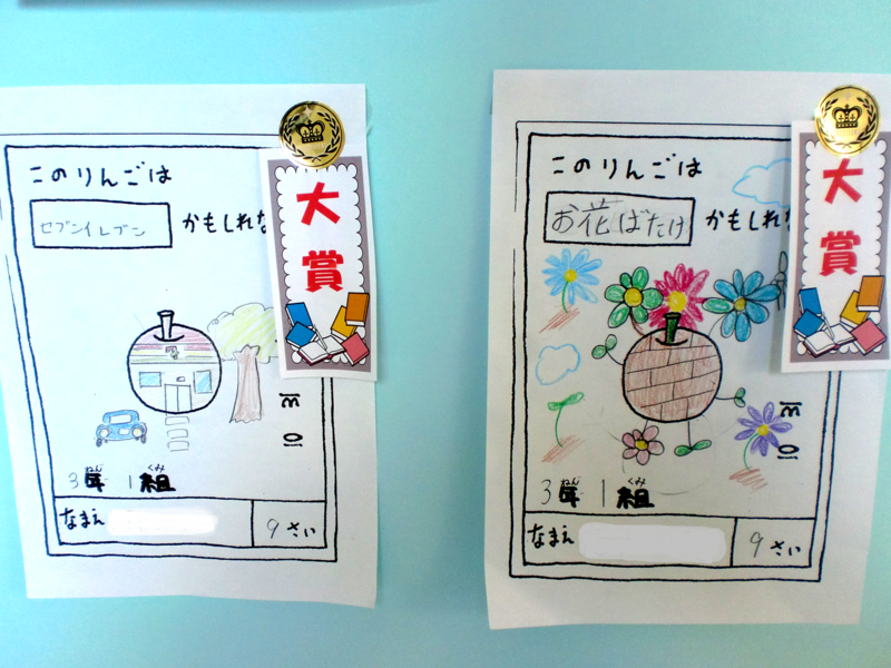 大賞作品のいくつかをご紹介します。ギャラリーには各学年の「このりんごは○○かもしれない」も掲示してありますので、来校した際はぜひご覧になってください。