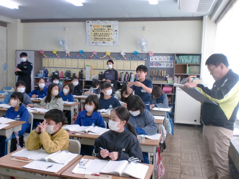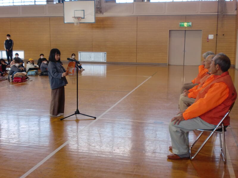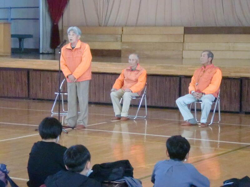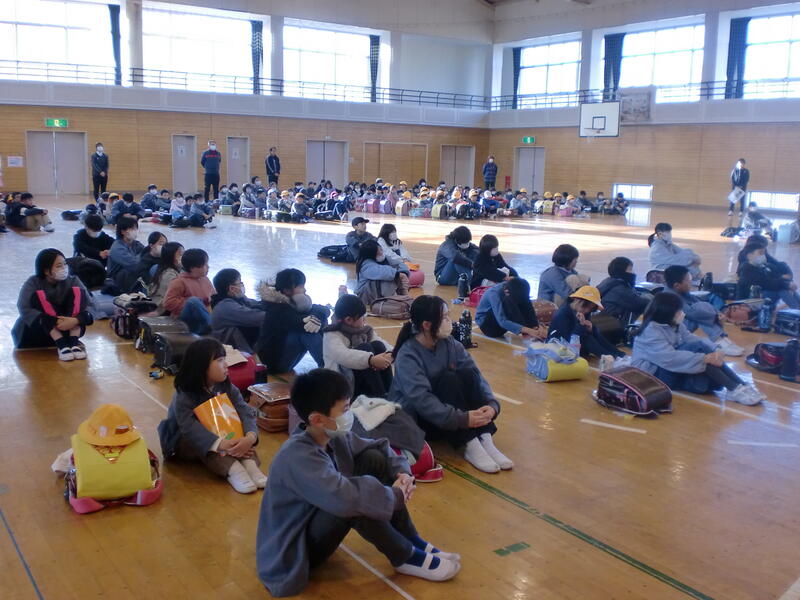 5校時終了後、いつも子どもたちの登下校を見守っていくださっている「見守り隊」を代表して3名の方をお迎えし、体育館で「見守り隊感謝の会」が行われました。1年生と6年生がお礼の言葉を述べ、最後に見守り隊の方から「あいさつをしっかりすること」「体調を崩さないように気をつけて過ごすこと」この2つのお話がありました。その後、通学班に分かれて一斉下校を行いました。これからも交通事故には十分気をつけて安全に登下校しましょう。