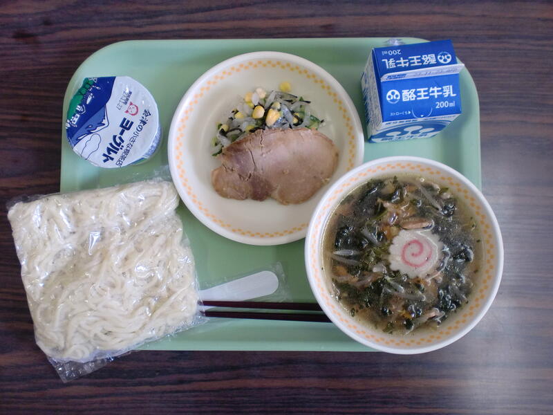 中華めん 喜多方しょうゆラーメンかけ汁 県産チャーシュー 大根とのりのサラダ ヨーグルト です。ごちそうさまでした