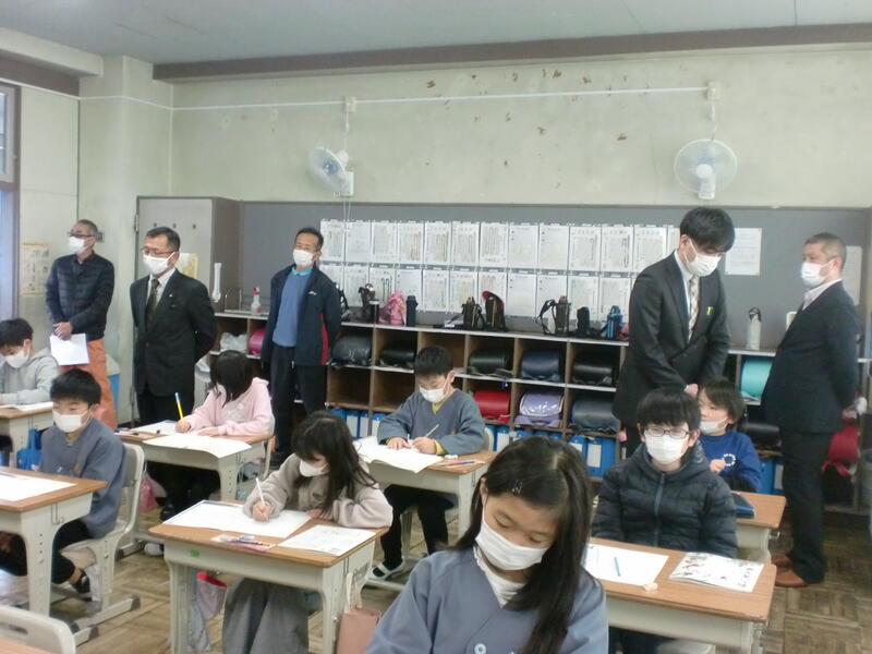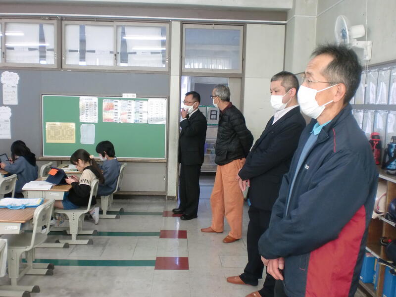 各学年の授業の様子を参観され、「みんな落ち着いて学習に取り組んでいますね。」と子どもたちの成長した姿にお褒めの言葉をいただきました。その後、校長室で、協議を行ったり、本校の服務倫理委員会に参加していただき、貴重なご意見をいただいたりしました。