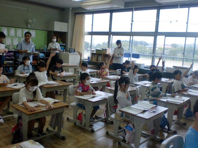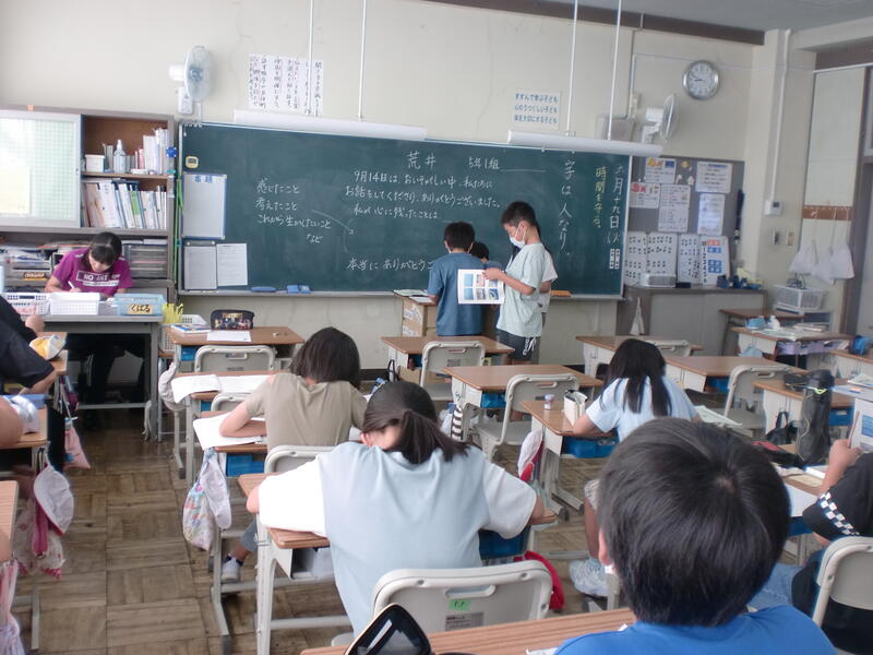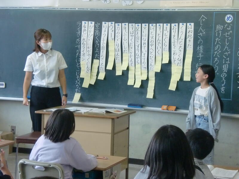 じんざの様子や言葉やこれまでの男の子との関わりから、子どもたちは意見を発表することができました。今回は、教育委員会から指導主事の先生にもきていただき貴重なご指導を受けることができました。