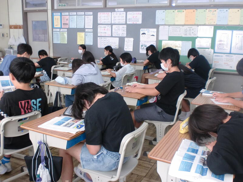 宿泊学習の「防災震災講座」でお世話になった先生に、お礼の手紙を書いています。