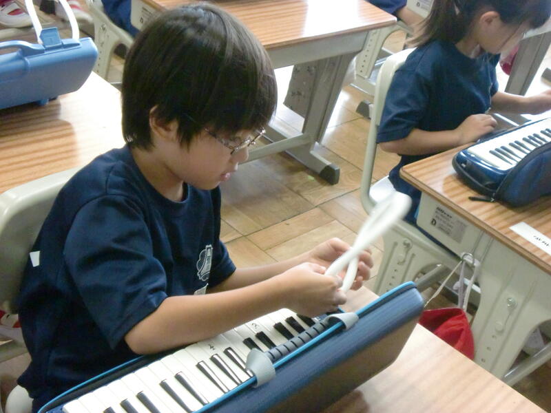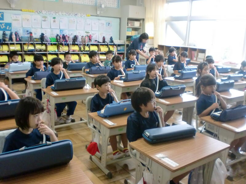 4校時、1年生で鍵盤ハーモニカ講習会が行われました。これまでも上手に演奏できていた子どもたち。今回、部品の名前や使い方、吹き方のコツを教えてもらったことで、よりすてきな音色の演奏をすることができるでしょうね。