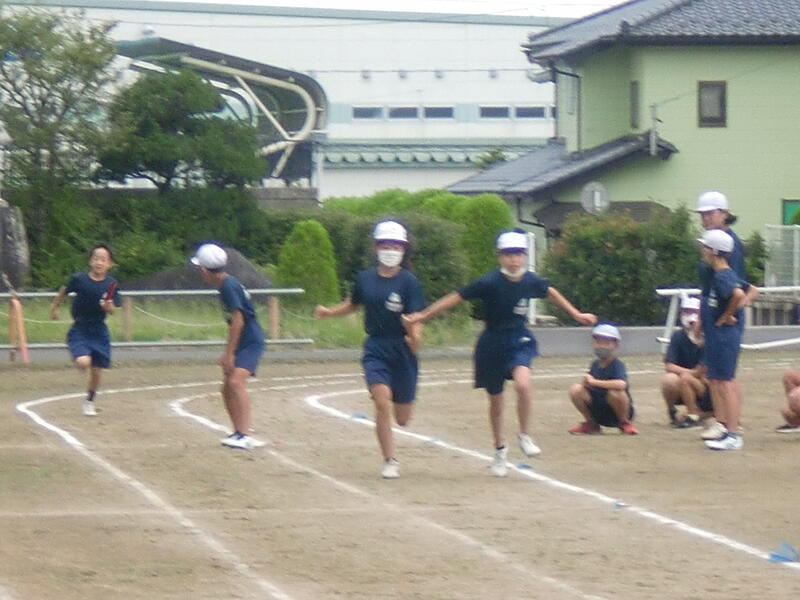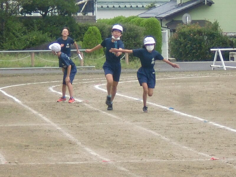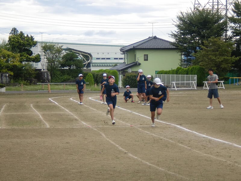 10月4日の市陸上競技大会校にむけて、5・6年生一緒に朝からリレーの練習を行っています。バトンのつなぎも上手になってきました。入賞、そしてベスト記録を目指してがんばっています。