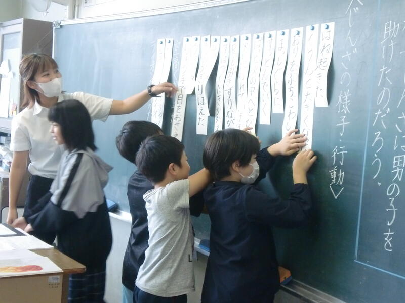 子どもたちは、物語に出てくる文から気持ちを想像して音読することができました。