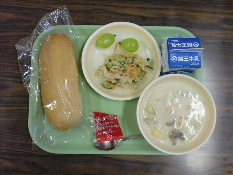 米粉パン いちごクリーム さつまいもシチュー 大根とツナのサラダ マスカット(2個)