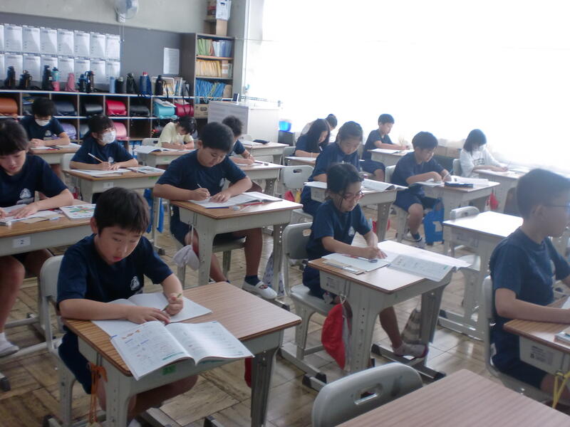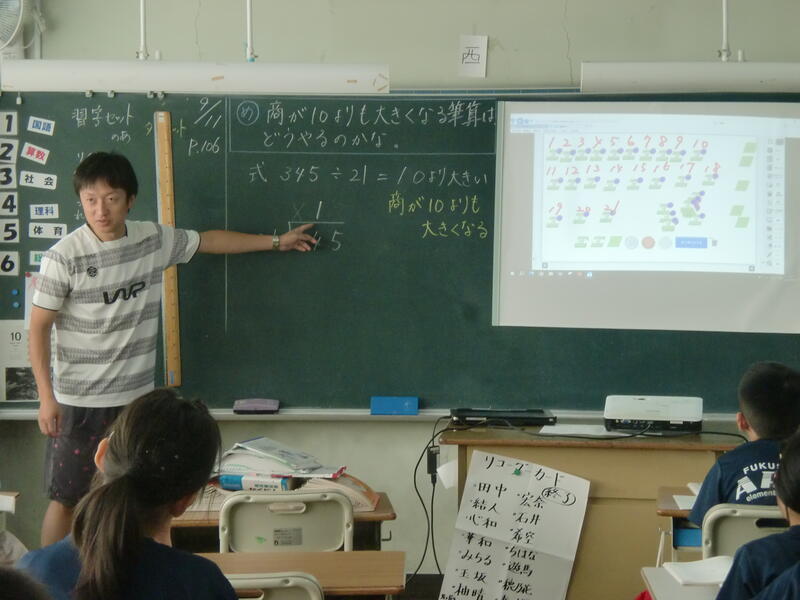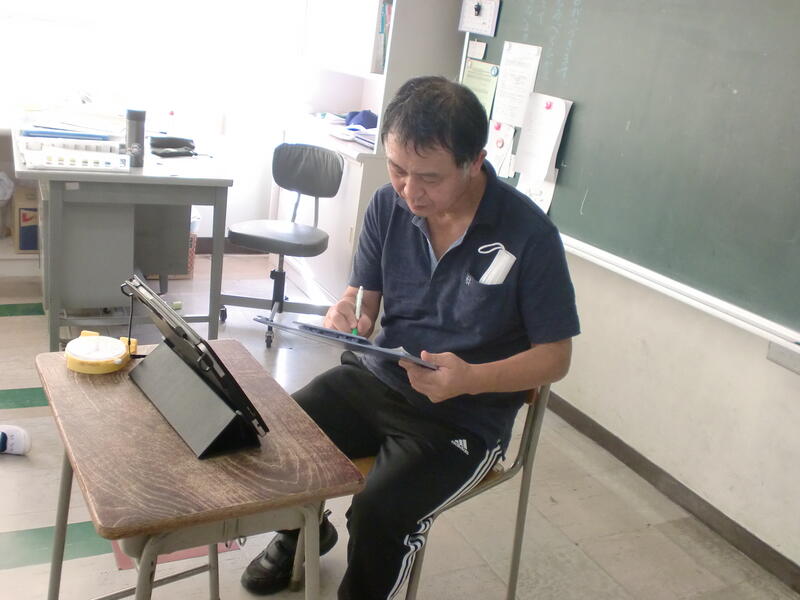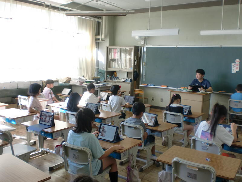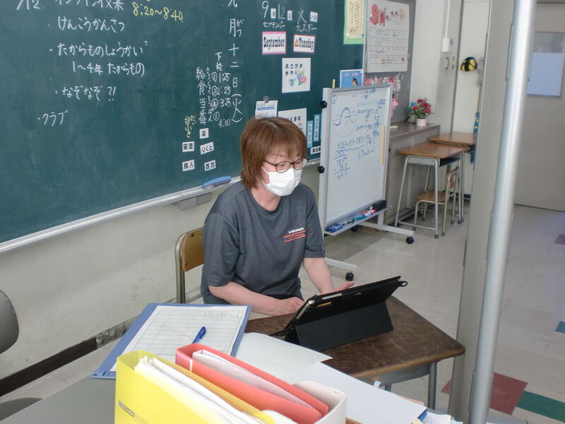 1校時の授業はそれぞれの家で受け、その後登校しました。朝から学校にきている子は教室で授業を受けました。3年生以上の担任の先生は別室に行き、そこから映像を発進してみんながオンラインで授業を受けることができるよう、工夫をしていました。