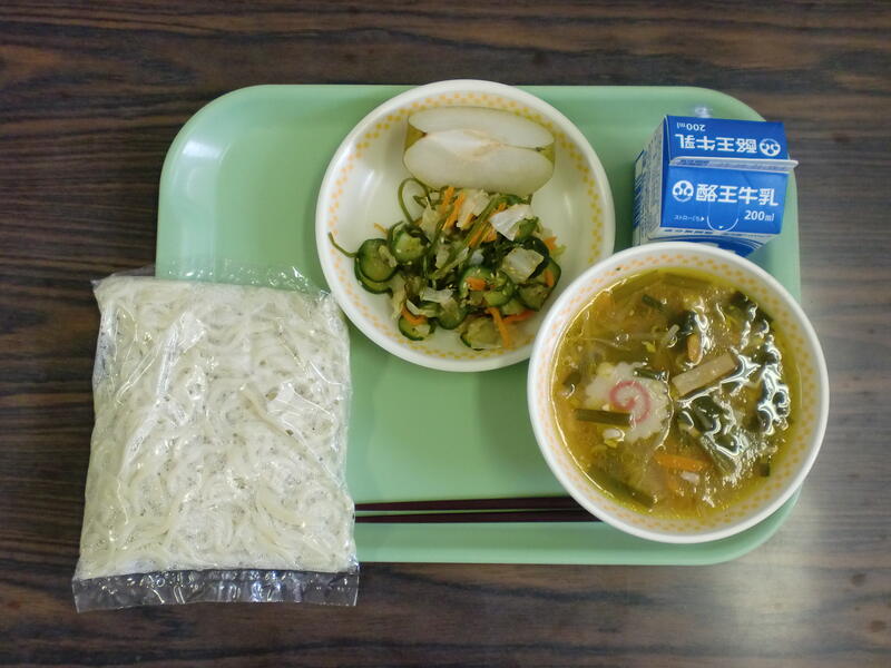 中華めん みそラーメンかけ汁 キムチあえ 梨