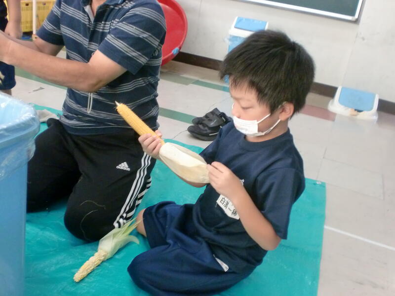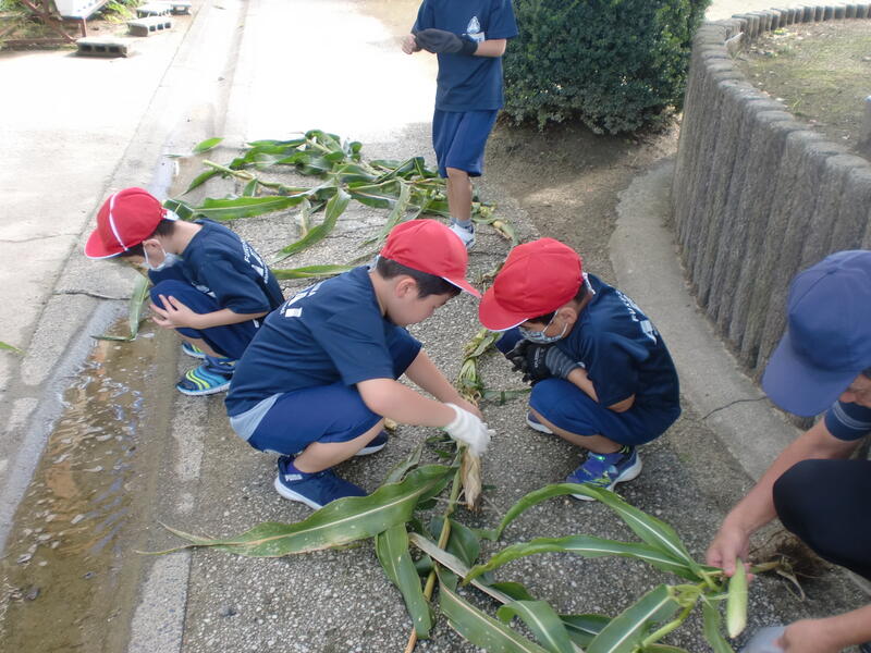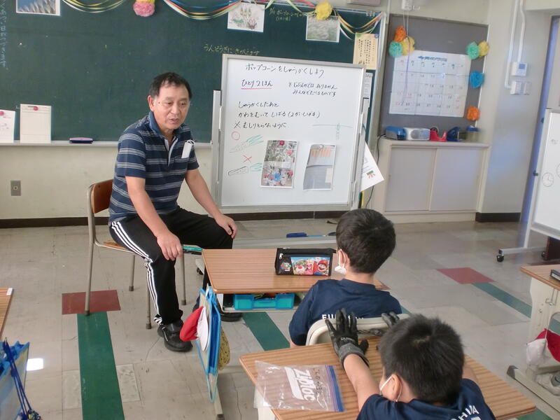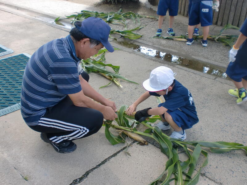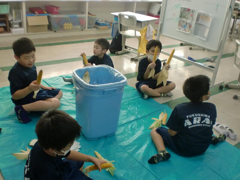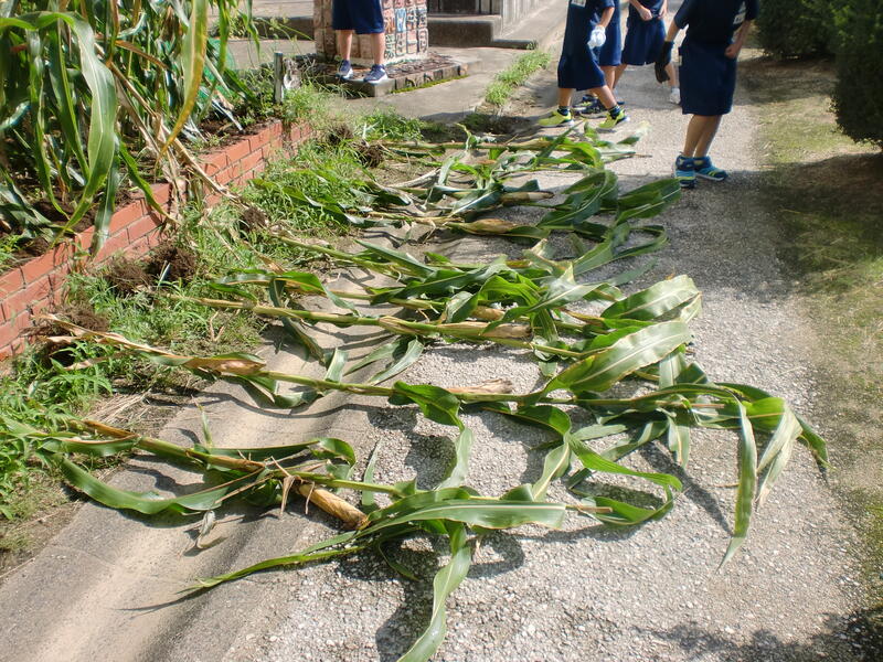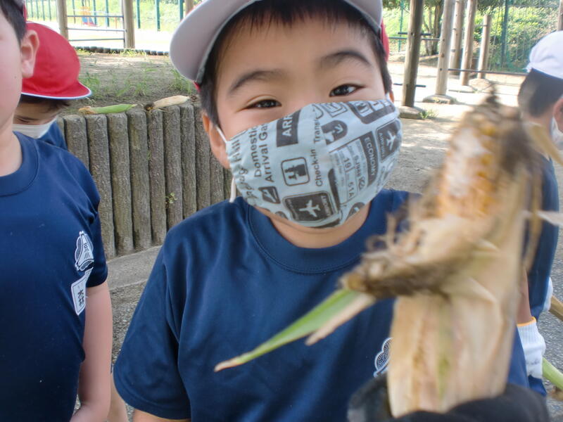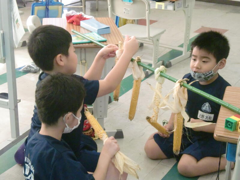 今日は、なごみ学級で、1学期から育てていたポップコーンの収穫です。