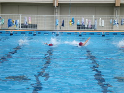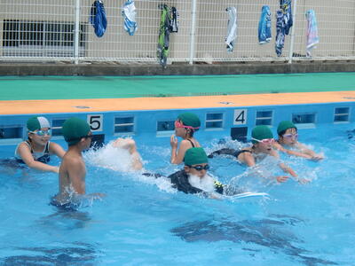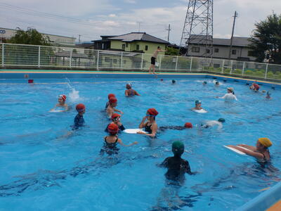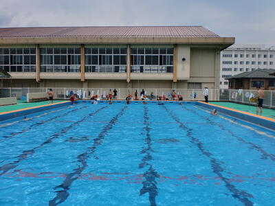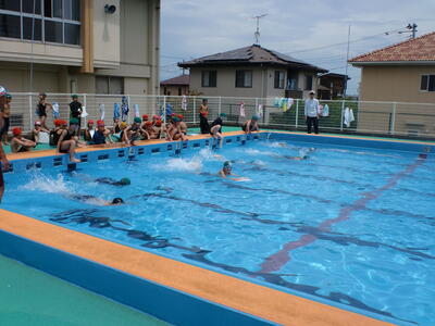 絶好の天気の下、水泳記録会が1・2校時は5・6年生、3・4校時は3・4年生で行なわれました。今回はこれまでの水泳学習の集大成。子どもたちは、出場する種目で精一杯泳ぎ切ることができました。また、今回の水泳記録会には、先週までお世話になった水泳講師の先生もボランティアで来ていただき、子どもたちの泳ぎのサポートをしていただきました。余った時間は、待ちに待った自由時間。特に6年生は小学校生活最後のプールを満喫していました。